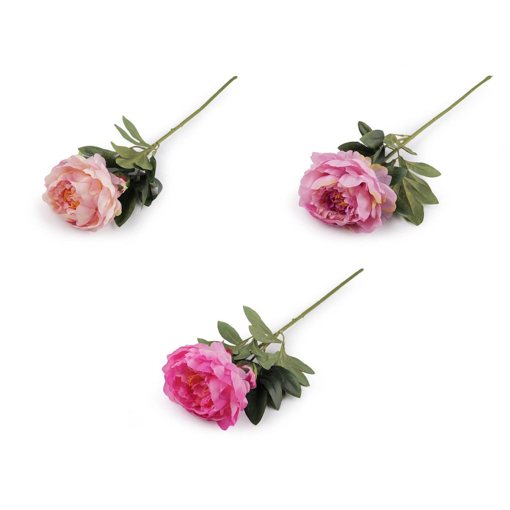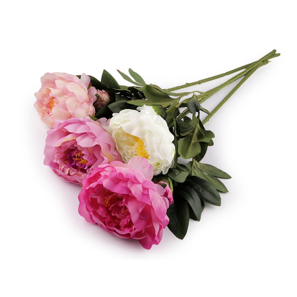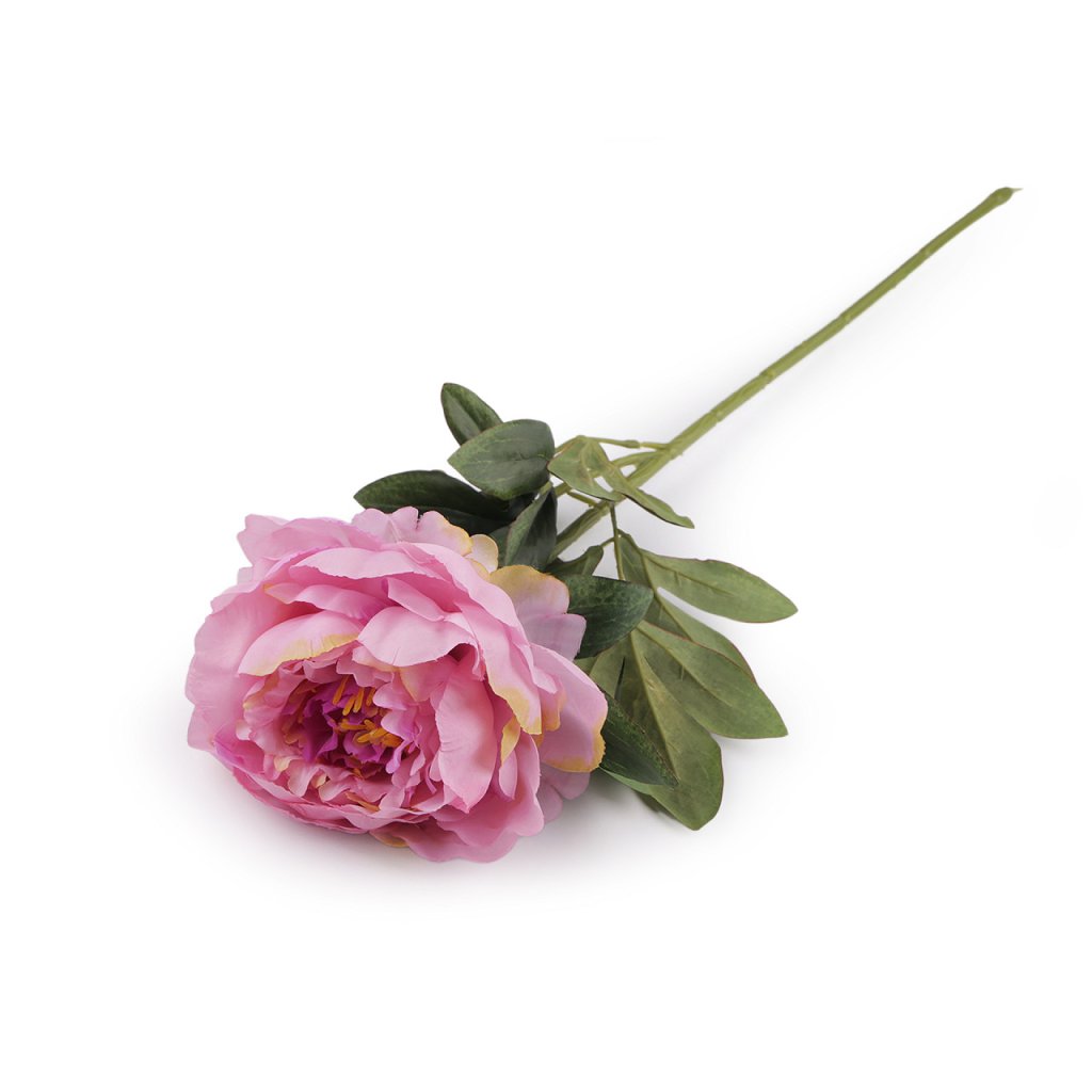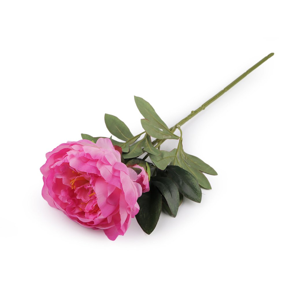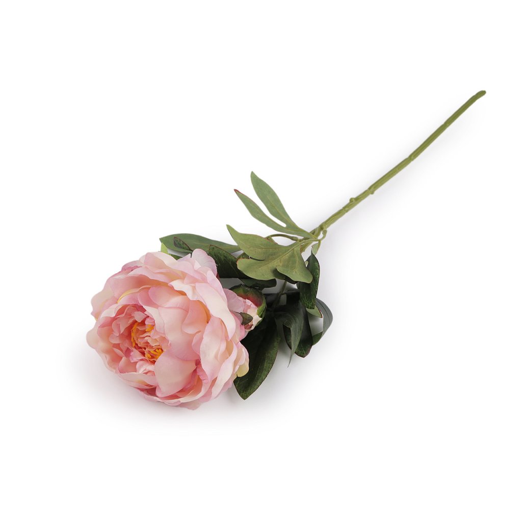 Umělá pivoňka vám romanticky doladí vázy, květinová aranžmá i věnce. Stonek je plastový, s drátem uvnitř. Najdete na něm bohatý textilní květ a poupě.