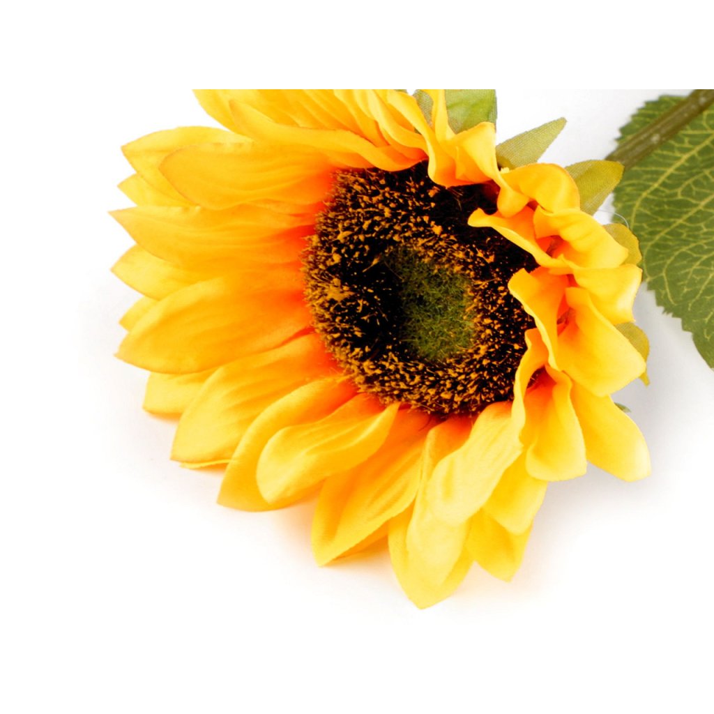 Umělá slunečnice na stonku s listem působí jako živá. Má kvalitně vypracované detaily. Ve stonku se nachází drát.