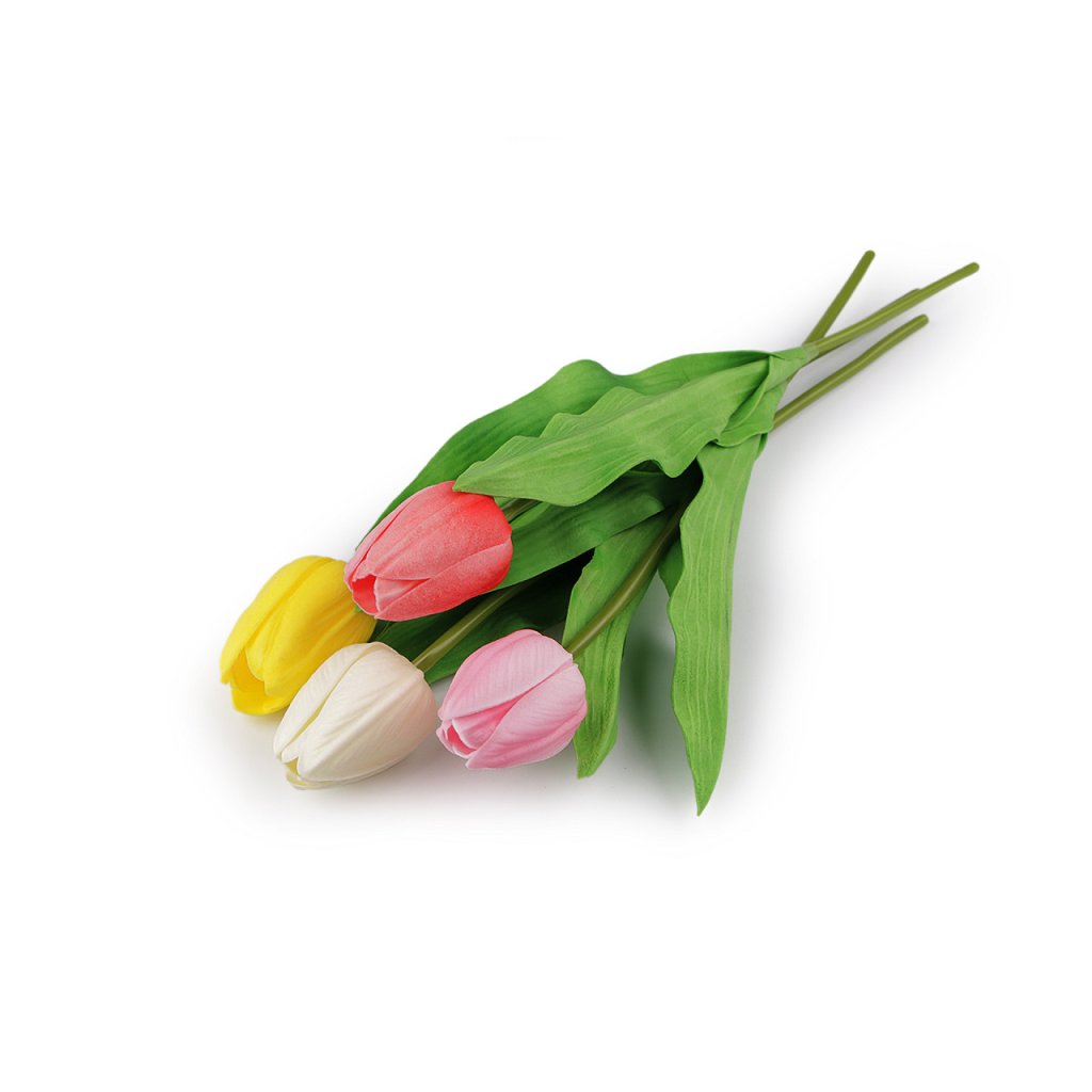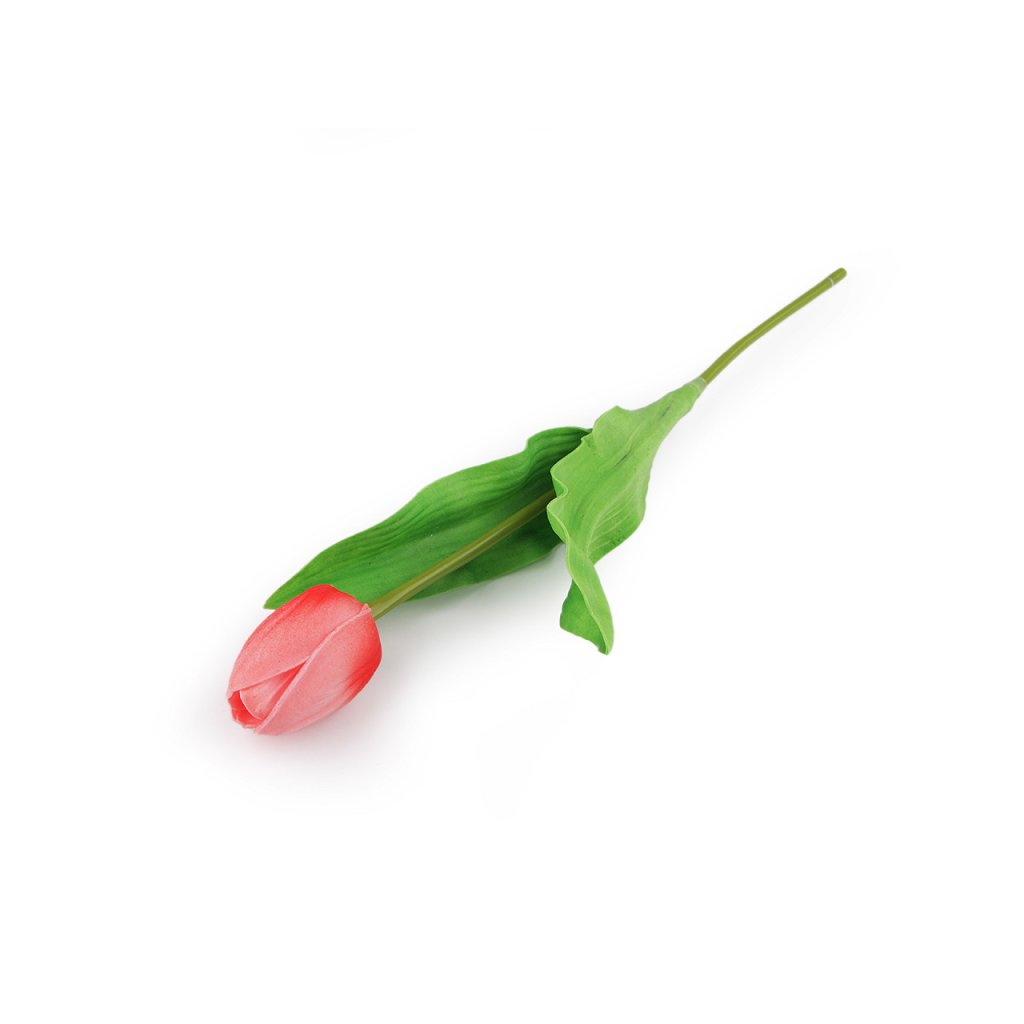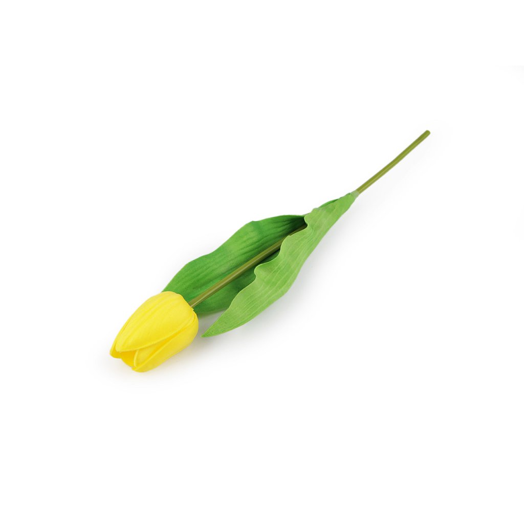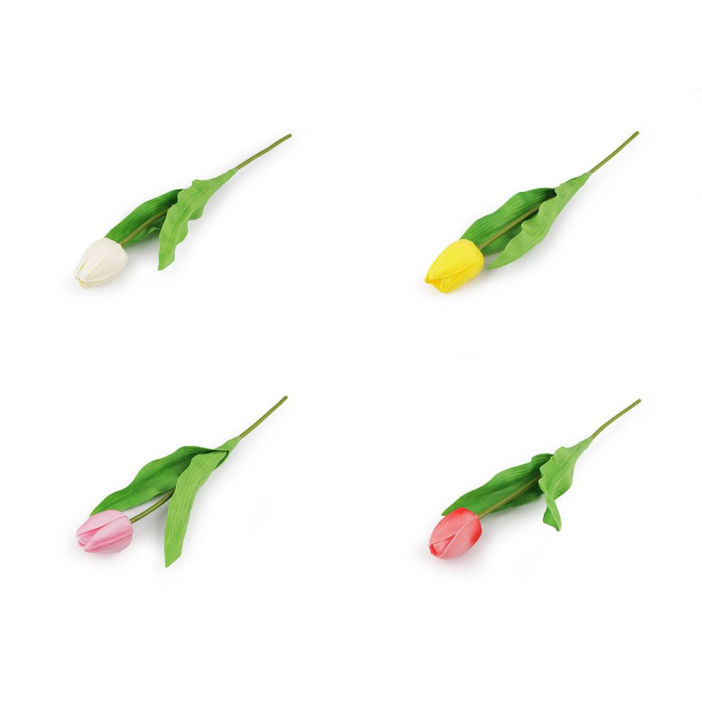 Dekorační tulipán je velice realistický. Měkký plast, ze kterého je vyrobený, má efektní žilkování. Tulipány využijete na dekorační vazby, ikebany nebo věnce. Vyniknou také jednoduše položené ve váze. Uvnitř stonku mají drát, díky kterému se dají tvarovat.