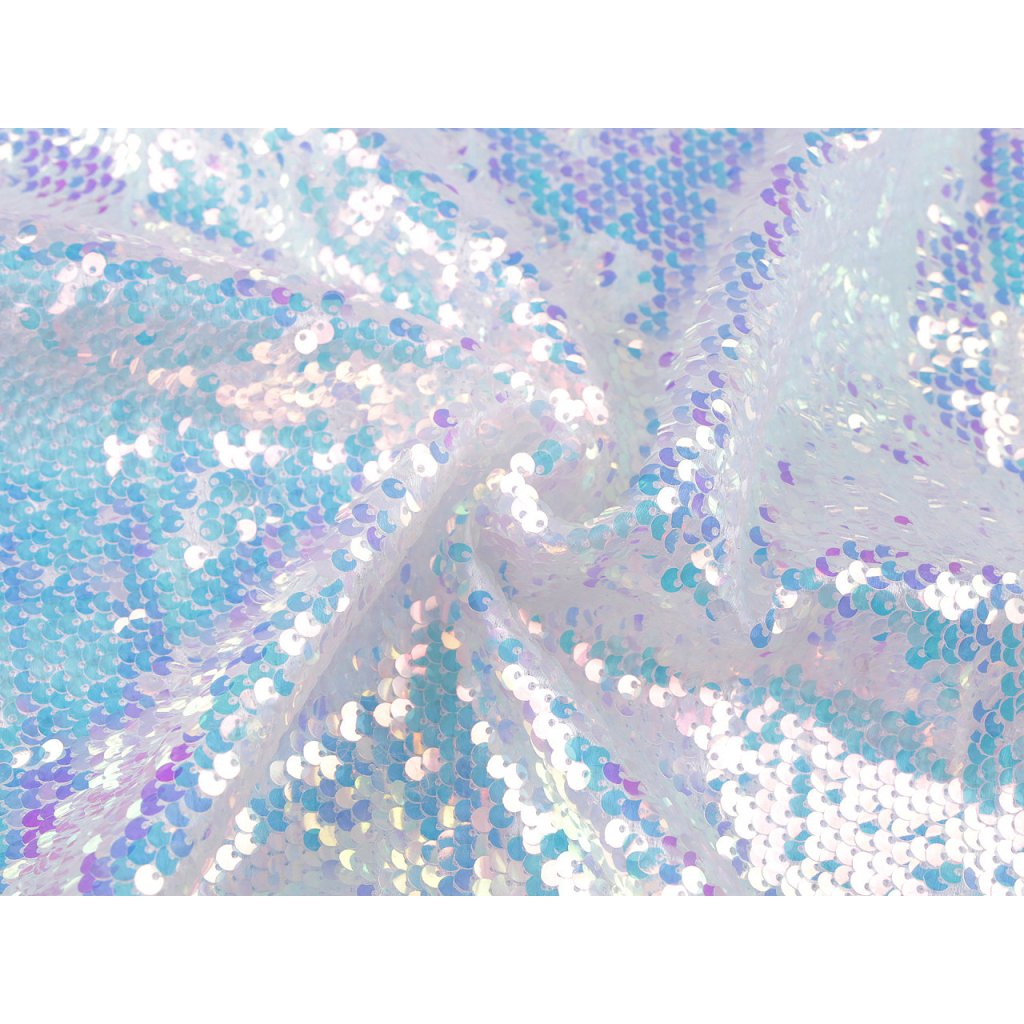 Saténová látka má díky flitrům (Ø5 mm) neskutečně zajímavé odlesky. Využijete ji na šití tanečních a karnevalových kostýmů (mořská panna, jednorožec apod.) i plesových šatů a doplňků (psaníčka, pompadurky).