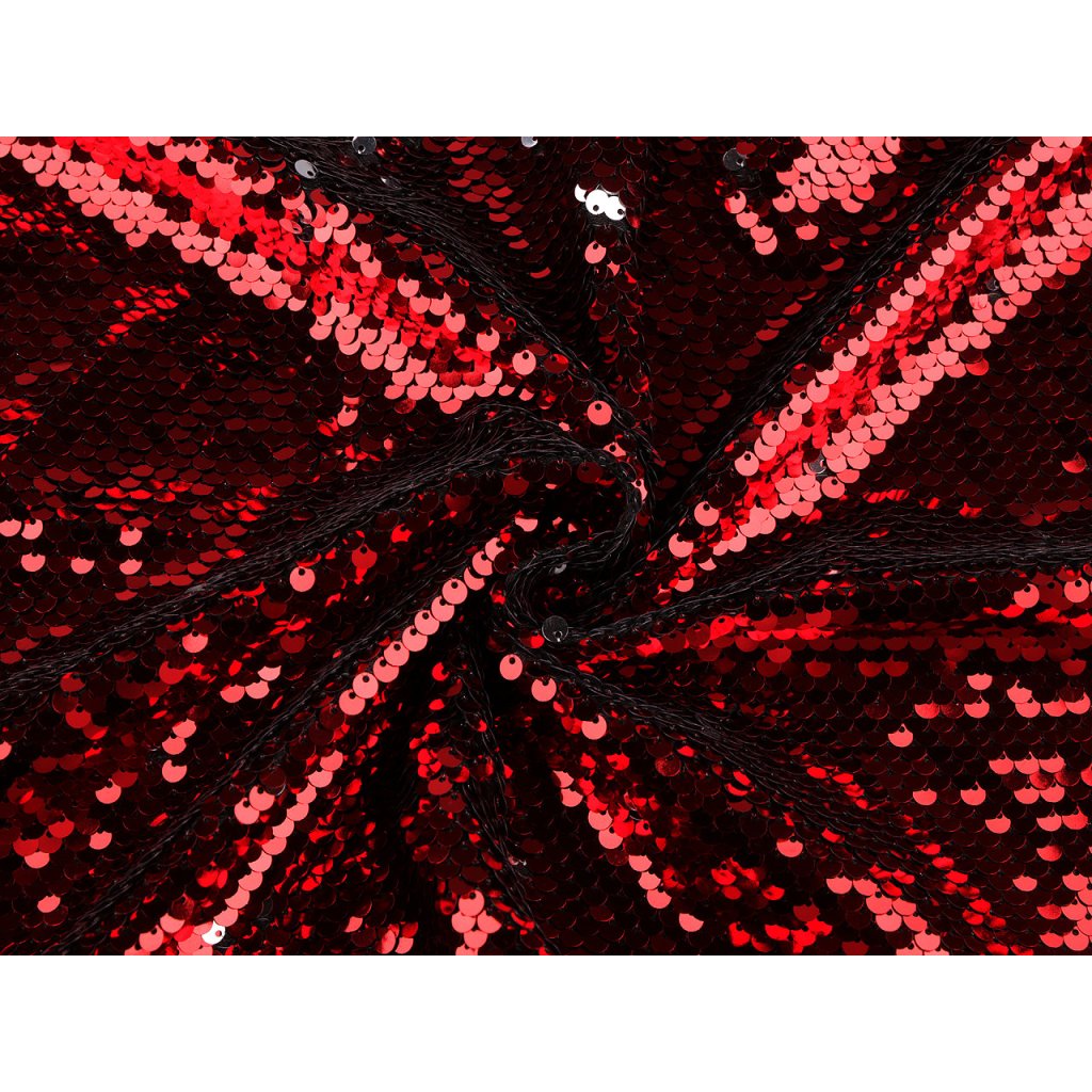 Flitrová látka se efektně leskne a třpytí. Využijete ji na šití tanečních a karnevalových kostýmů (mořská panna, jednorožec apod.) i plesových šatů a doplňků (psaníčka, pompadurky).