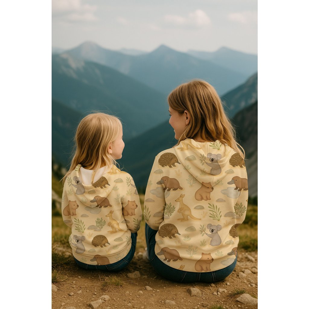Originální teplákovina s australskými zvířátky z kolekce Látky s příběhem – exkluzivně pouze u nás na e-shopu! Jemný, pružný a ideální na dětské i pohodlné oblečení.