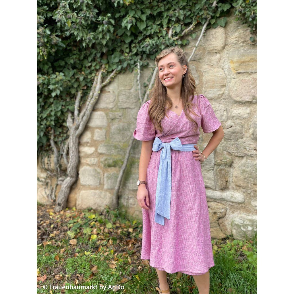 Spojuje to nejlepší z obou světů – vzdušnost a charakter lnu s jemností a praktičností bavlny. Díky tomu je příjemná na nošení, neškrábe a zároveň si zachovává typickou strukturu, kterou na lnu milujeme. Látka je lehká, krásně splývá, ale zároveň drží tvar a dobře se s ní pracuje i při šití detailů.