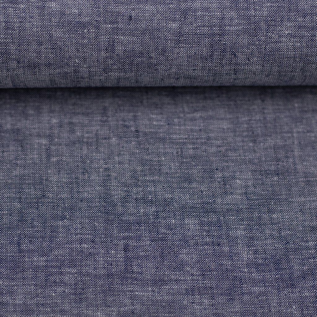 Lehká tkanina z lnu a bavlny v tmavě modrém jeans odstínu. Vzdušná, příjemná na nošení a ideální na šaty, halenky i letní kalhoty. Skvěle se hodí i na bytové doplňky.