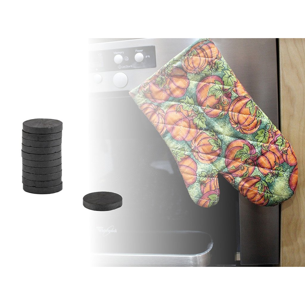 Slouží k přichycení na kovový podklad. Švadleny mohou magnety všít do chňapek.
