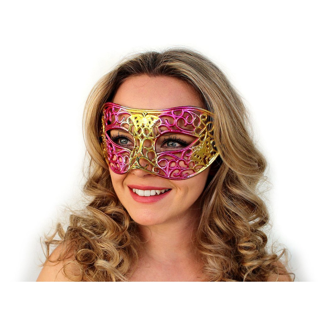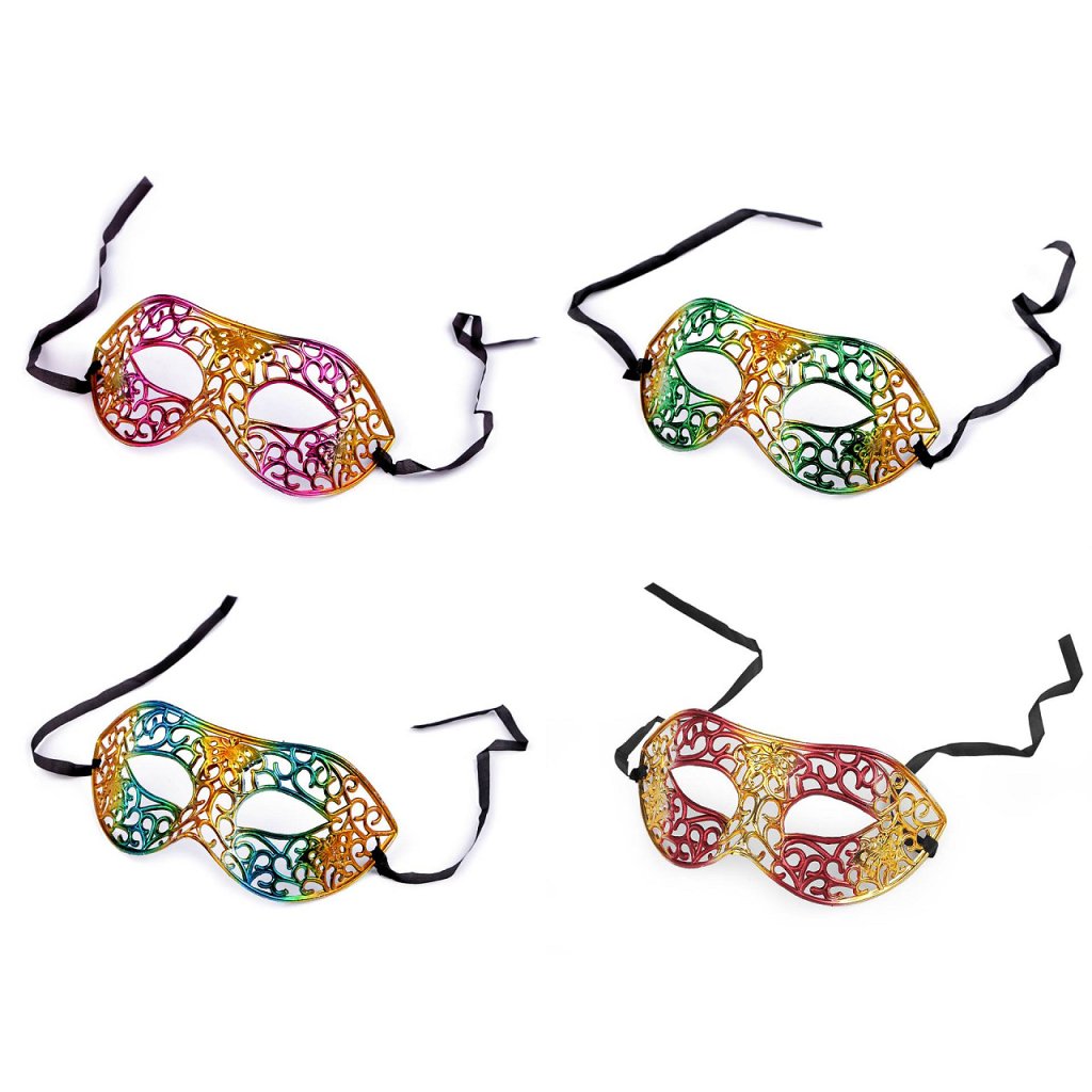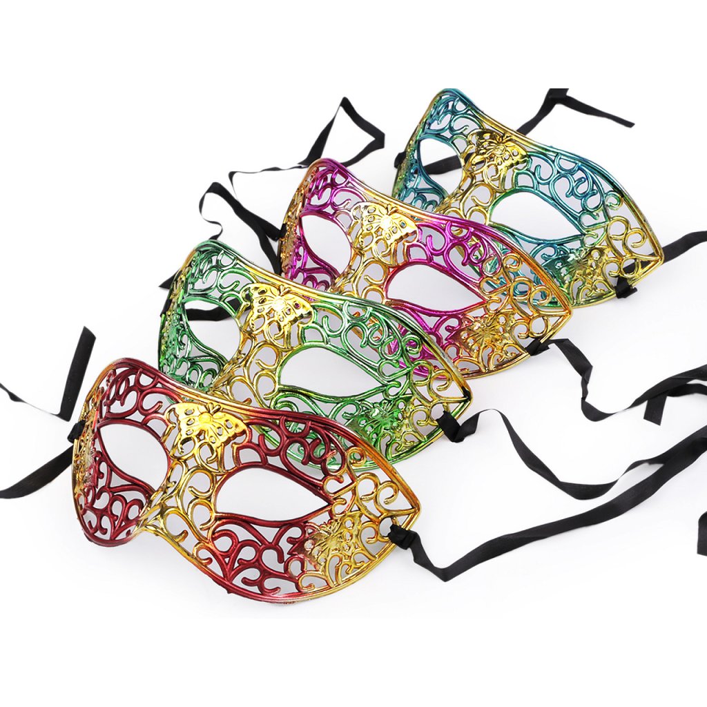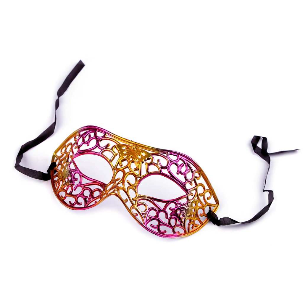 Efektní škrabošku využijete jako doplněk na karnevaly, párty, večírky nebo plesy. Zdobí ji zajímavé barevné přechody v metalických barvách. Je vyrobená z pevného plastu, který dobře drží tvar. Uvazuje se pomocí stuhy.