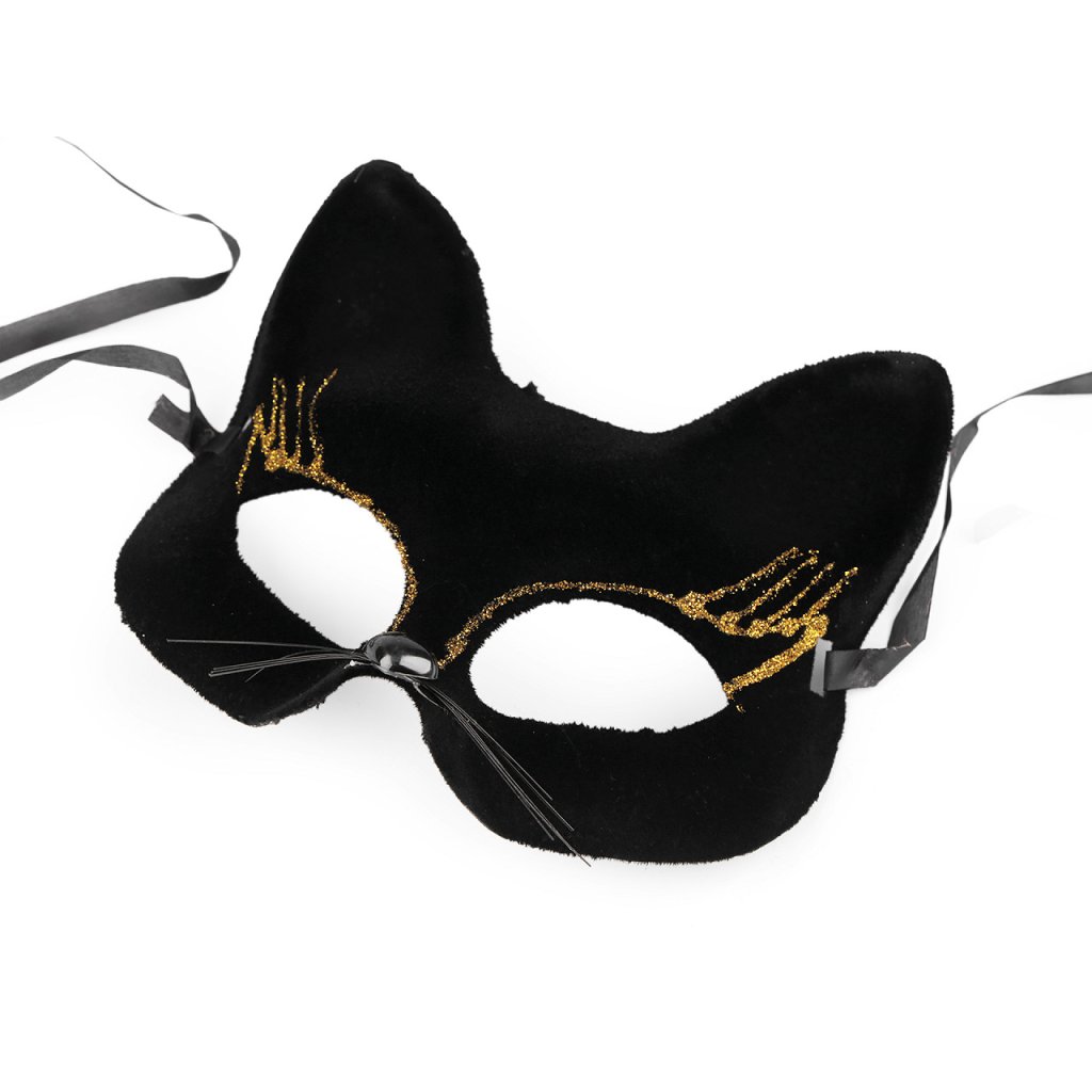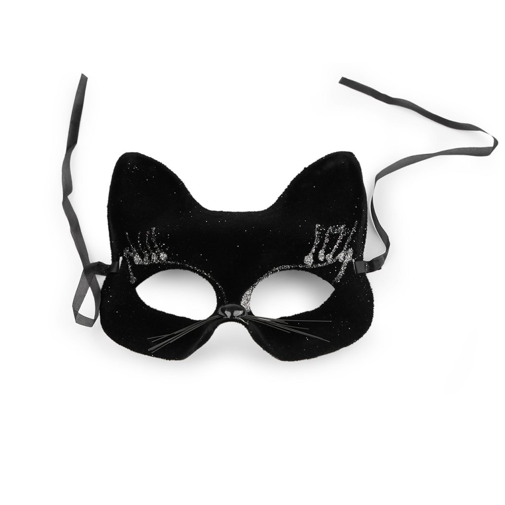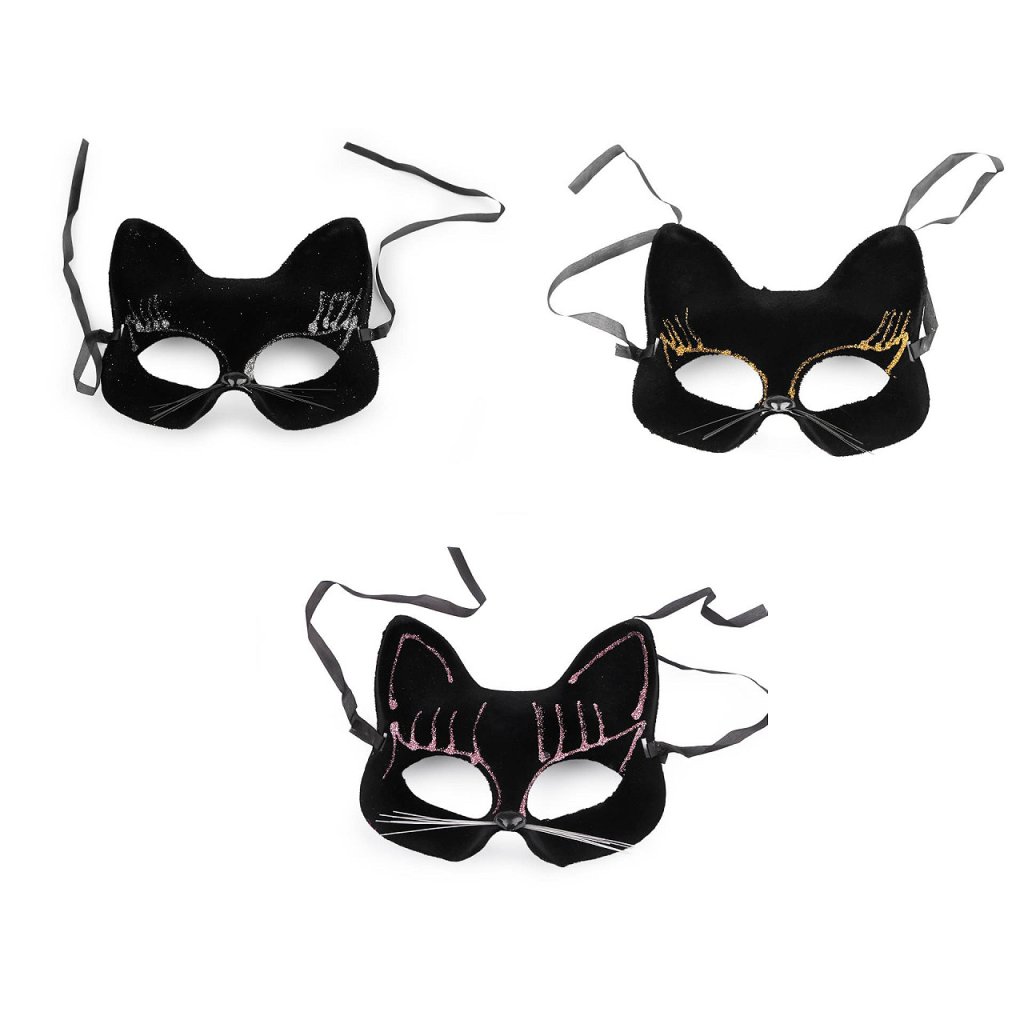 Karnevalová škraboška vás promění v tajemnou kočku. Její povrch připomíná samet. Kolem očí je ozdobená malbou z glitrů. Hravým detailem na škrabošce je čumáček.