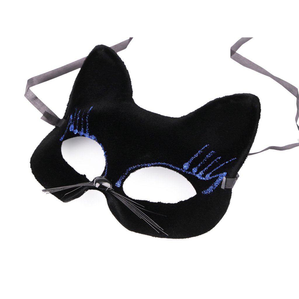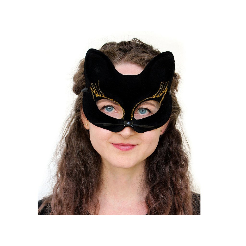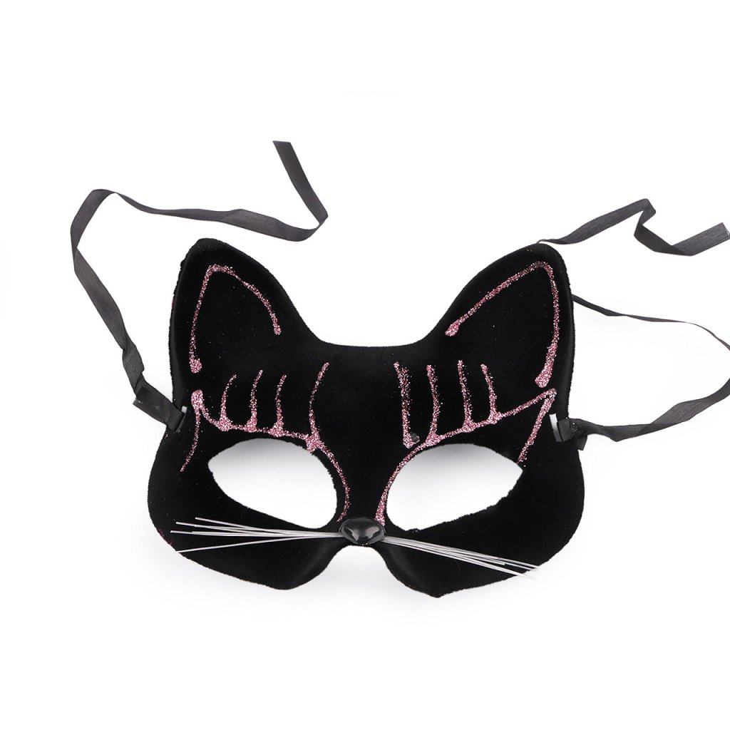 Karnevalová škraboška vás promění v tajemnou kočku. Její povrch připomíná samet. Kolem očí je ozdobená malbou z glitrů. Hravým detailem na škrabošce je čumáček.