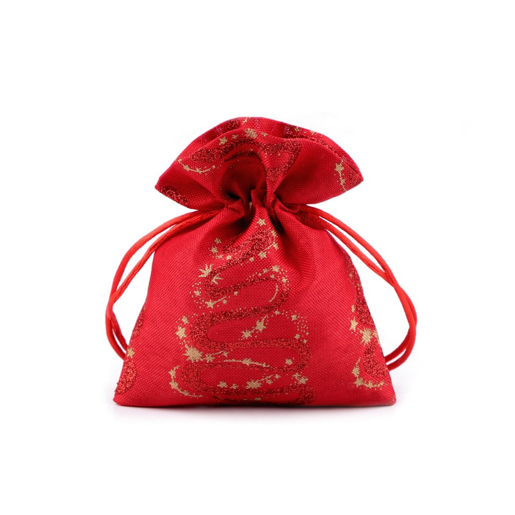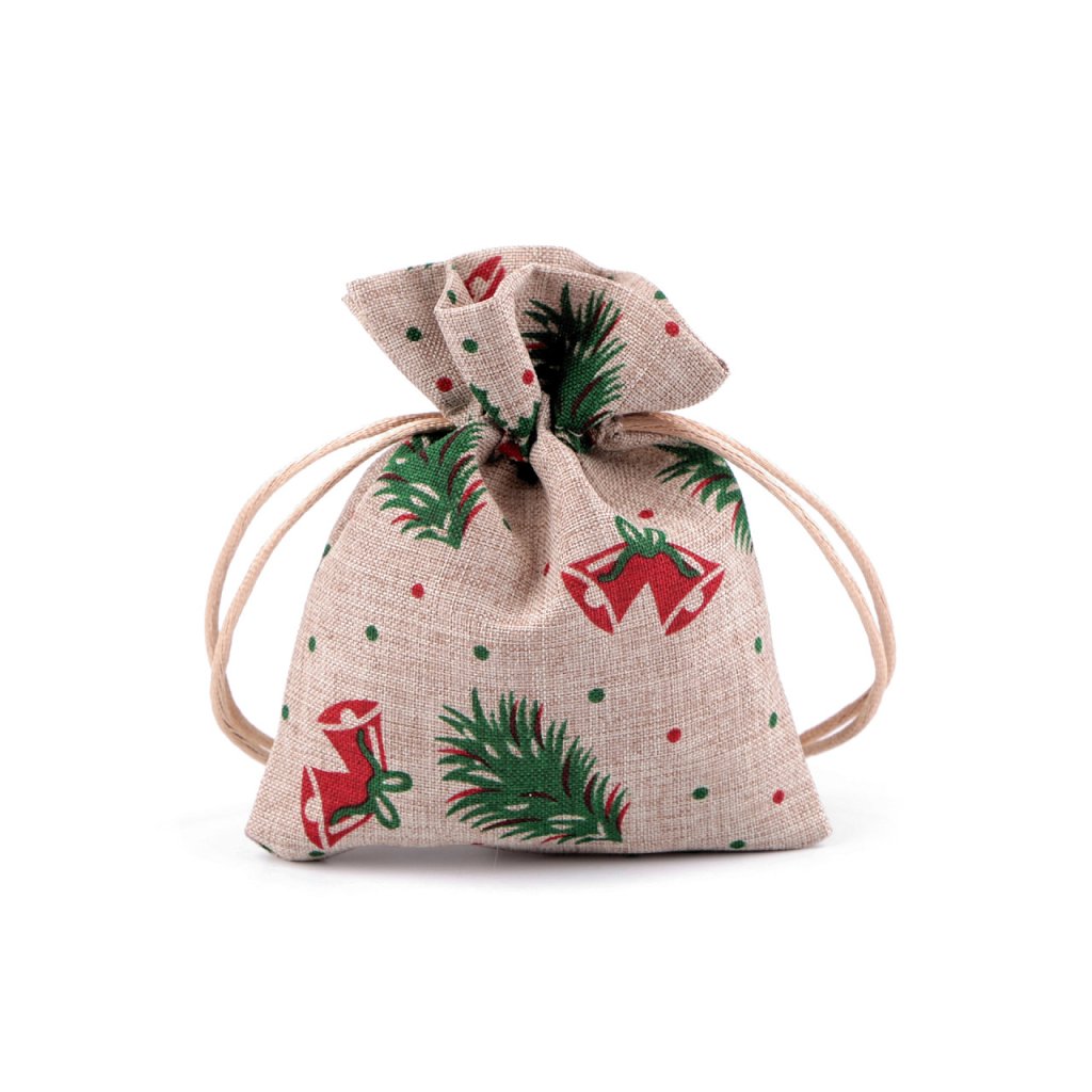 Dárkový pytlík s vánočním potiskem je vynikající na rychlé a efektní zabalení malých dárků. Materiál pytlíku svým zpracováním připomíná jutu. Uzavírá se pomocí stahovacích saténových šňůrek.