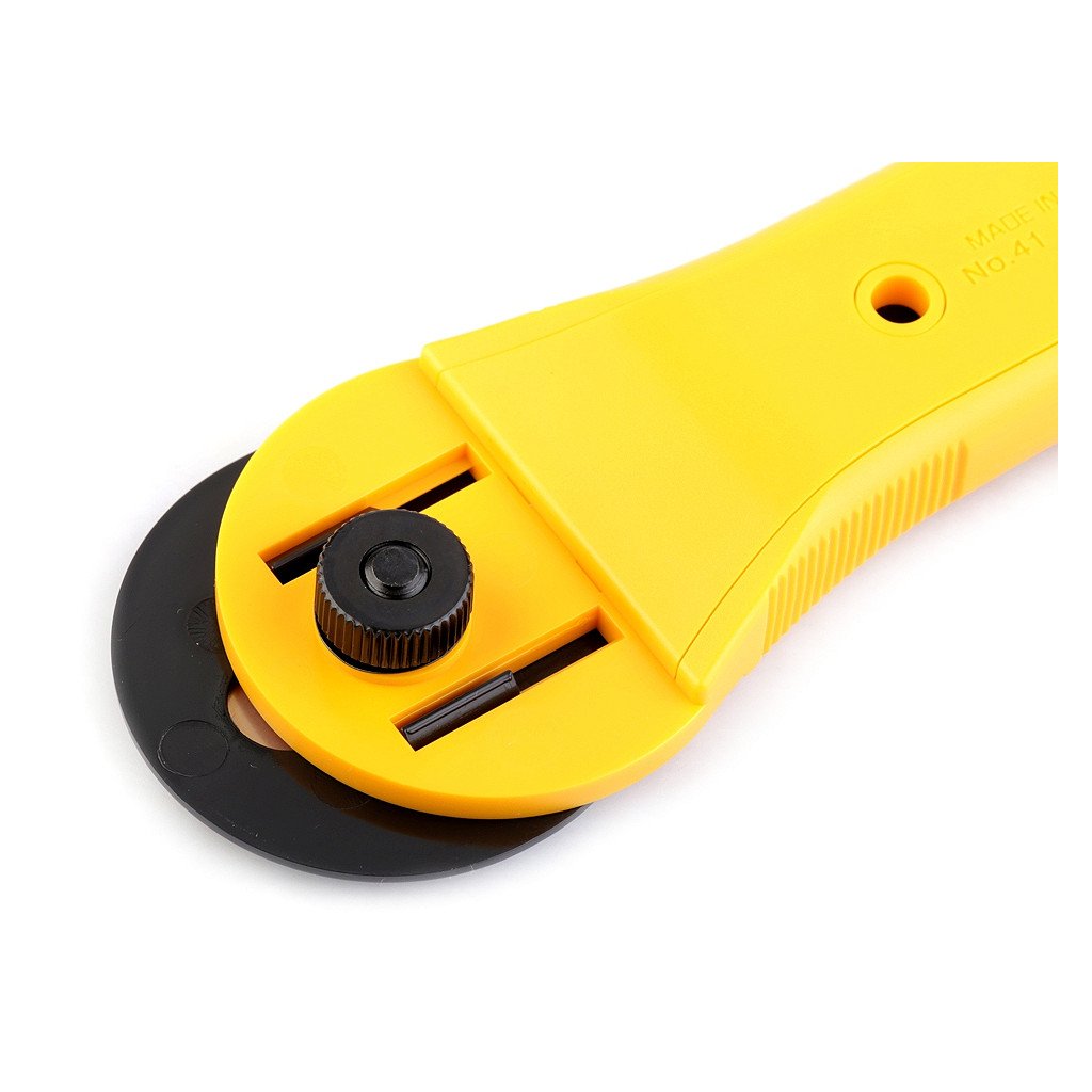 Má pohodlné a snadné uchopení rukojeti. Ostrá čepel z wolframové oceli má průměr 4,5 cm. Jak název napovídá, kruhový kotouč se při řezání otáčí a zajišťuje tak hladký záběr. Jeho odolný materiál má dlouhou životnost. Práce s řezacím kolečkem je bezpečná, vysoce ostrý kotouč je umístěný za bezpečnostním krytem, když se nepoužívá.