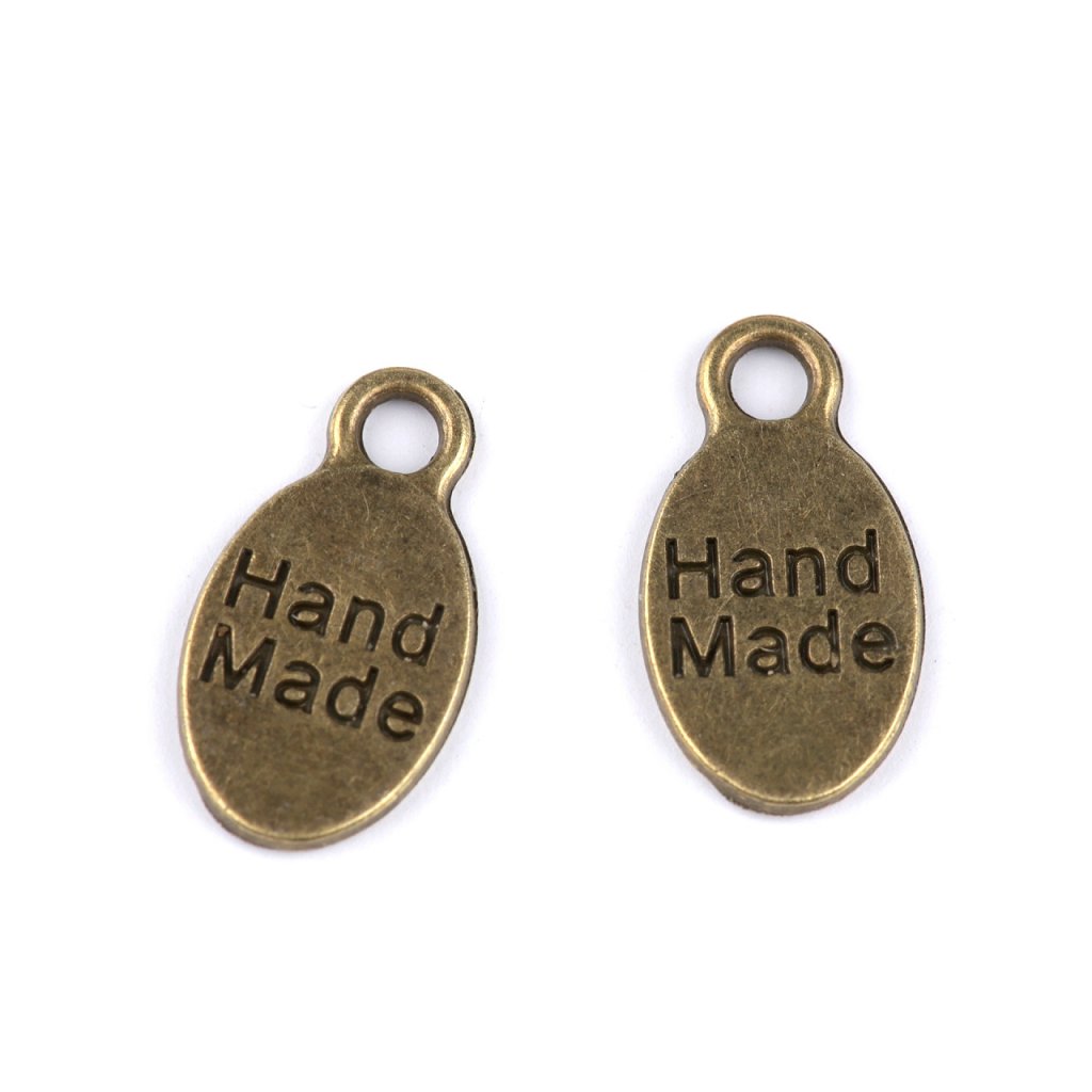 Kovový přívěsek s nápisem Hand Made má široké použití. Hodí se pro označení všech výrobků, které vznikly ručně. Ať už jsou to ručně vyrobené šperky, oděvy, dekorace, pletené a háčkované výrobky nebo třeba scrapbookingová alba. Přívěsek bude tou pravou tečkou pro označení vaší práce.