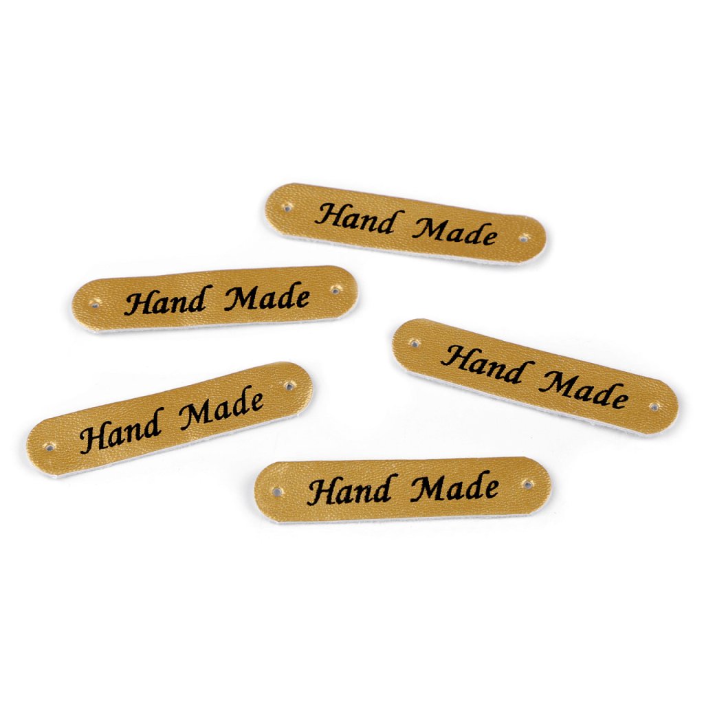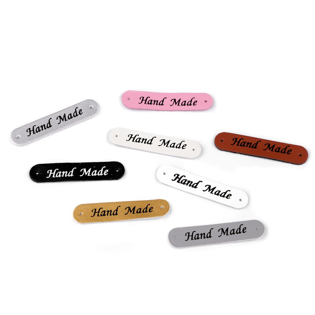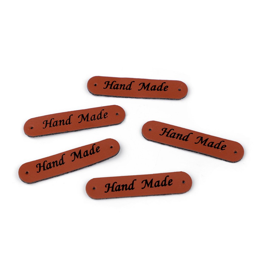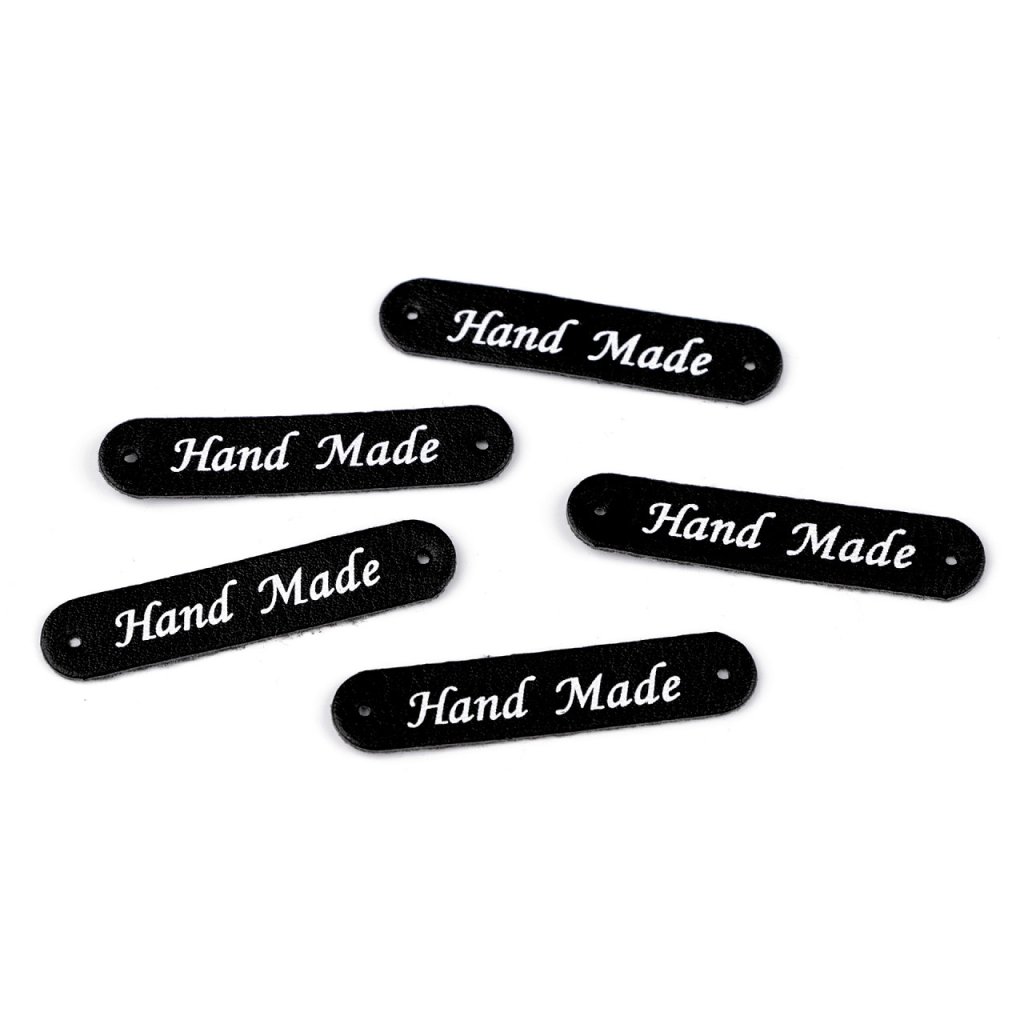 Cedulka z eko kůže je jednostranná, na bocích má otvory k přišití. Zdobí ji potisk Hand made. Na dotek je nášivka měkká a poddajná, ale přitom pevná.