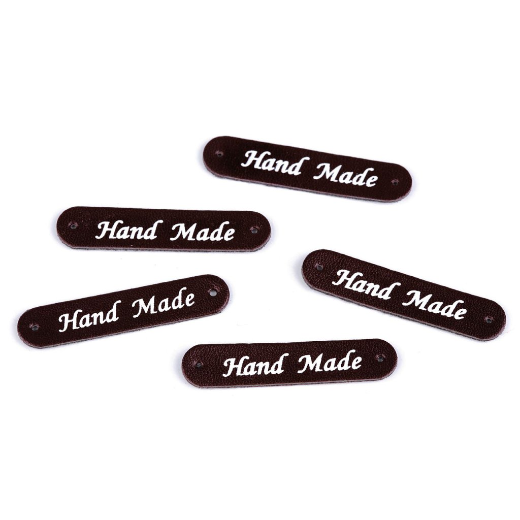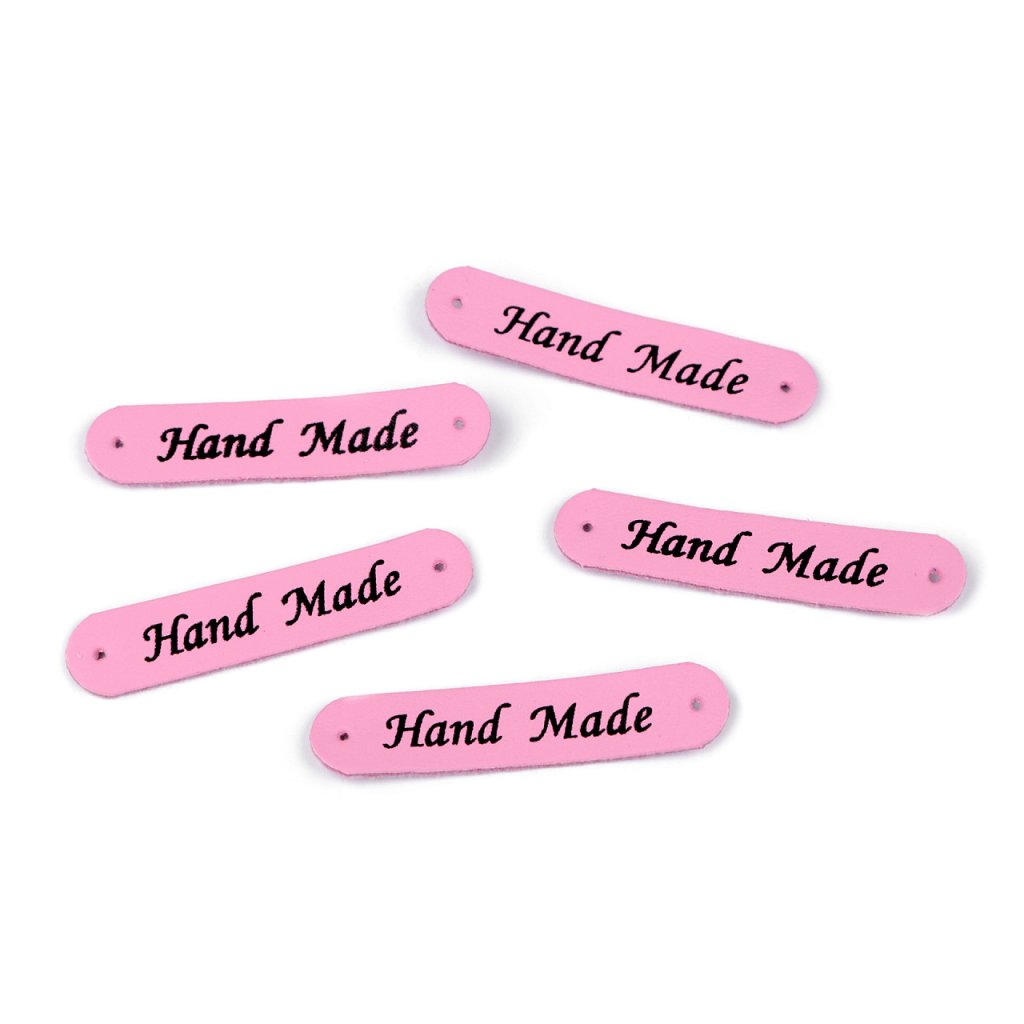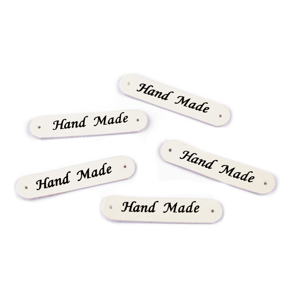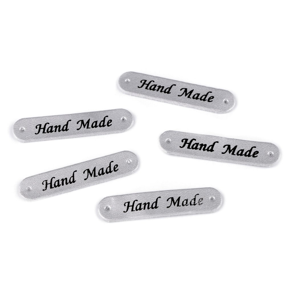 Cedulka z eko kůže je jednostranná, na bocích má otvory k přišití. Zdobí ji potisk Hand made. Na dotek je nášivka měkká a poddajná, ale přitom pevná.