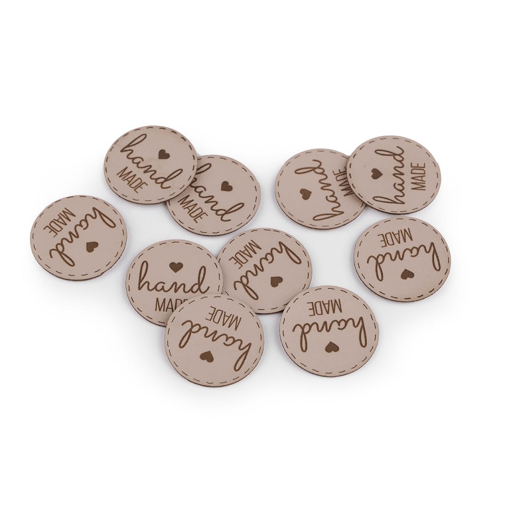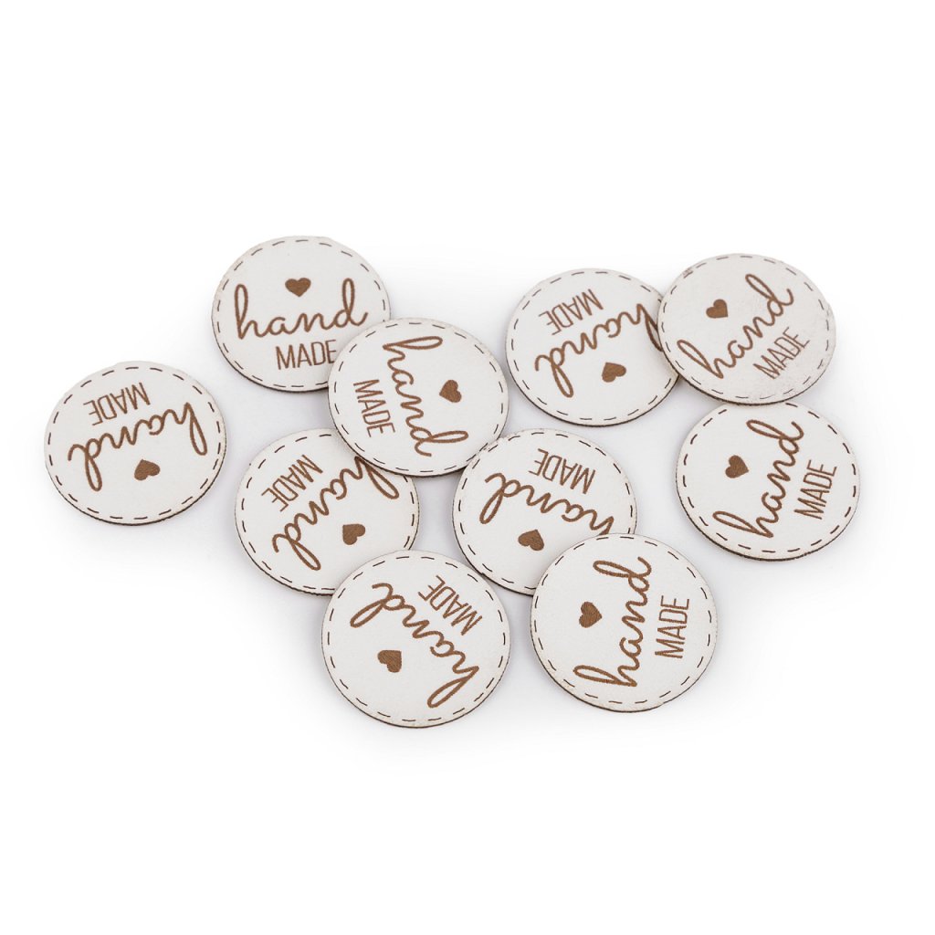 Cedulka z eko kůže je jednostranná. Zdobí ji nápis Hand made. Na dotek je nášivka měkká a poddajná, ale přitom pevná. Je pratelná při teplotě 40 °C.