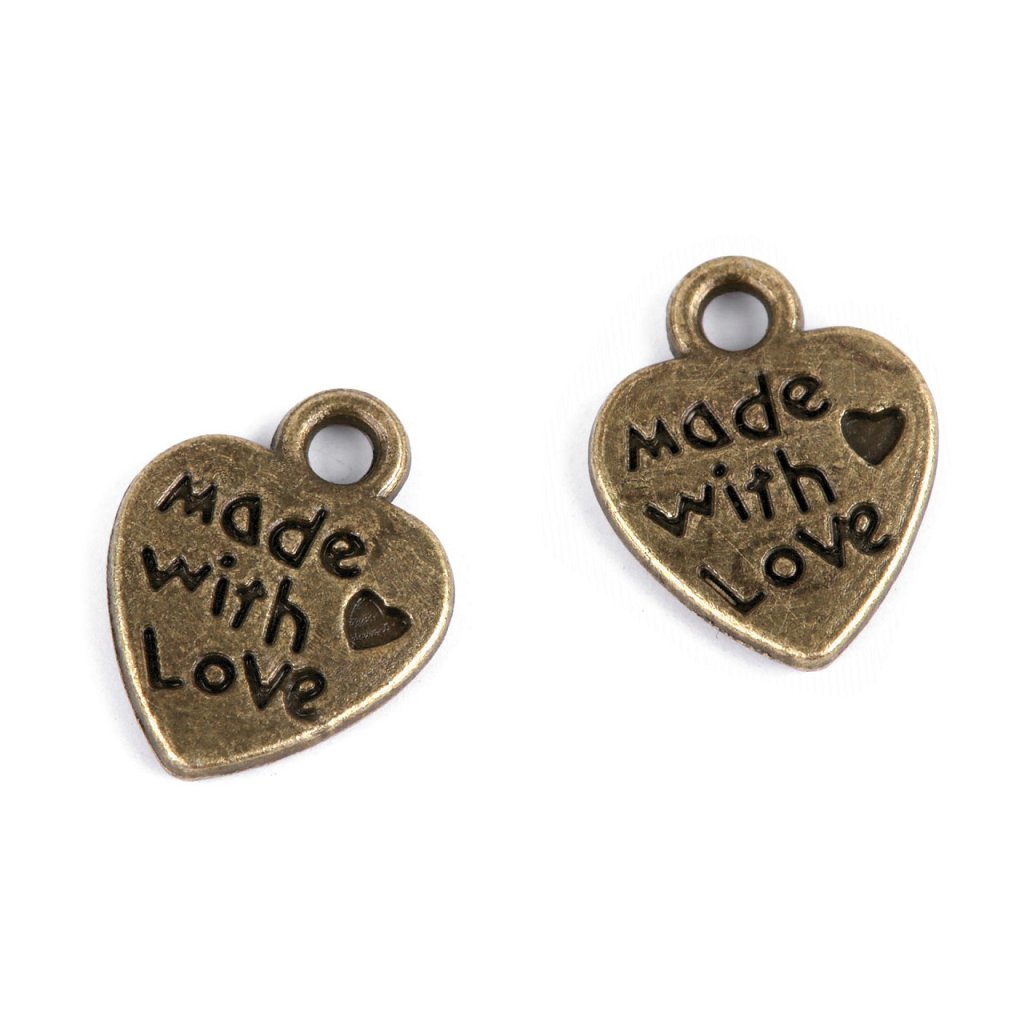 Kovový přívěsek s nápisem Made with love má široké použití. Hodí se pro označení všech výrobků, které vznikly ručně. Ať už jsou to ručně vyrobené oděvy, dekorace, pletené a háčkované výrobky nebo třeba scrapbookingová alba. Přívěsek bude tou pravou tečkou pro označení vaší práce.