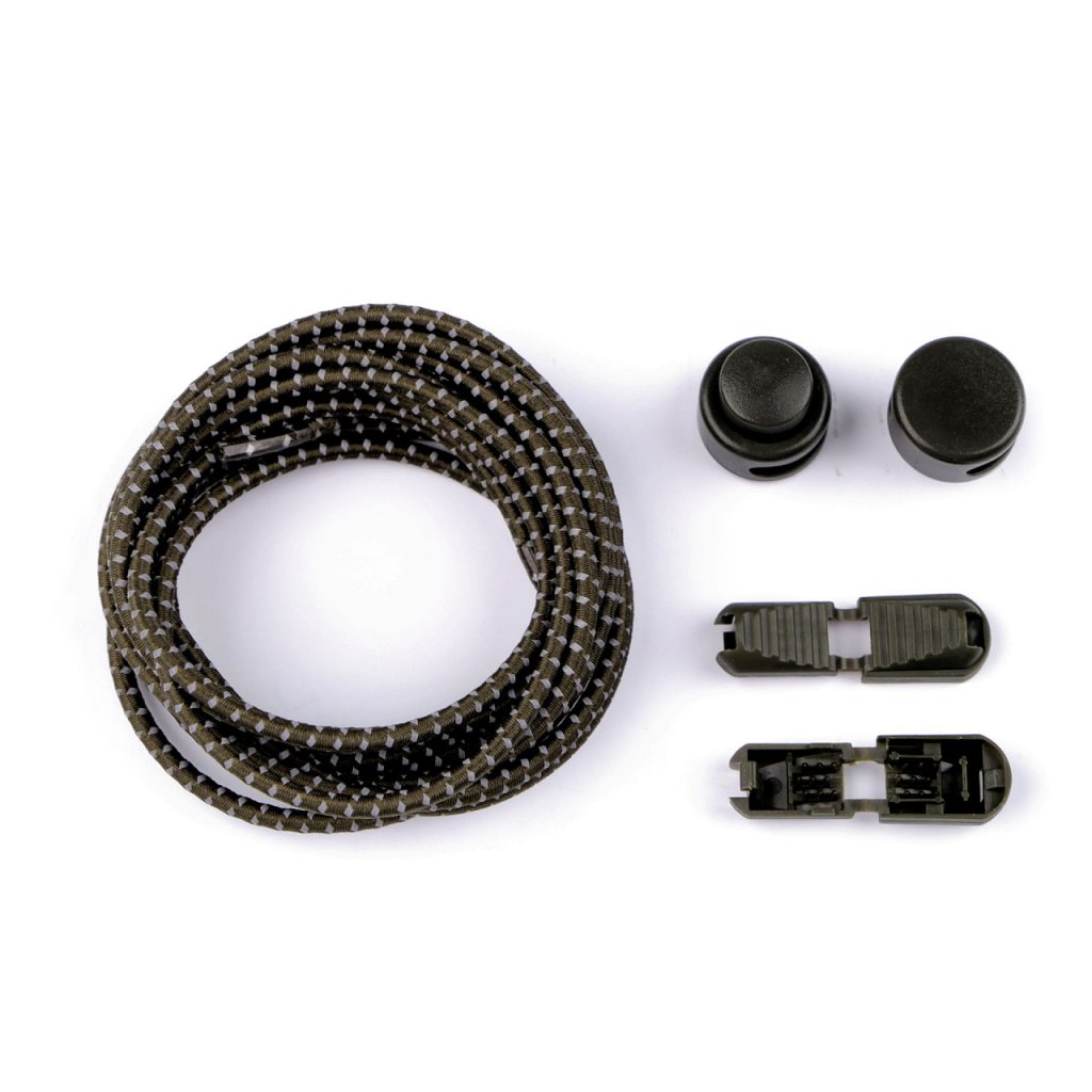 Balení obsahuje jeden pár elastických tkaniček délky 120 cm, 2 ks pojistky a 2 ks koncovky.