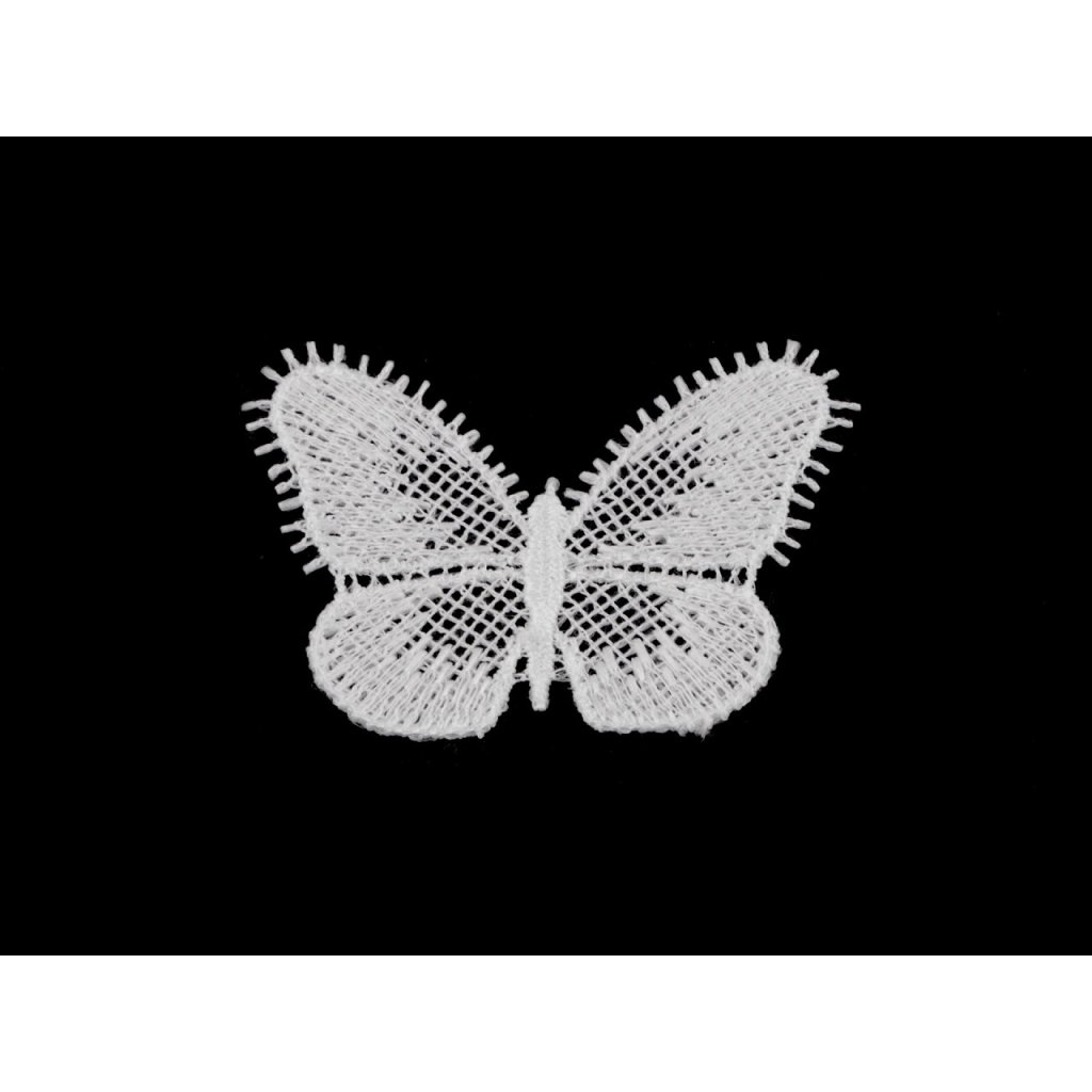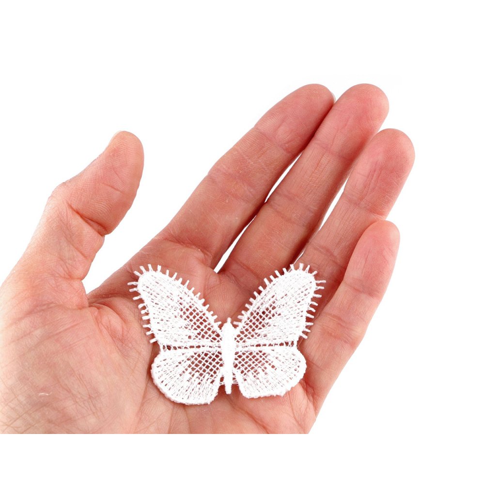 Krajkovou aplikaci motýla využijete na zdobení oděvů např. halenek, šatů, různých kloboučků, tašek apod. Hodí se i na zdobení bytových dekorací jako jsou ubrusy, prostírání, povlaky na polštáře a další. Použít ji můžete i ve scrapbookingu při vytváření různých přáníček, alb, deníků atd.