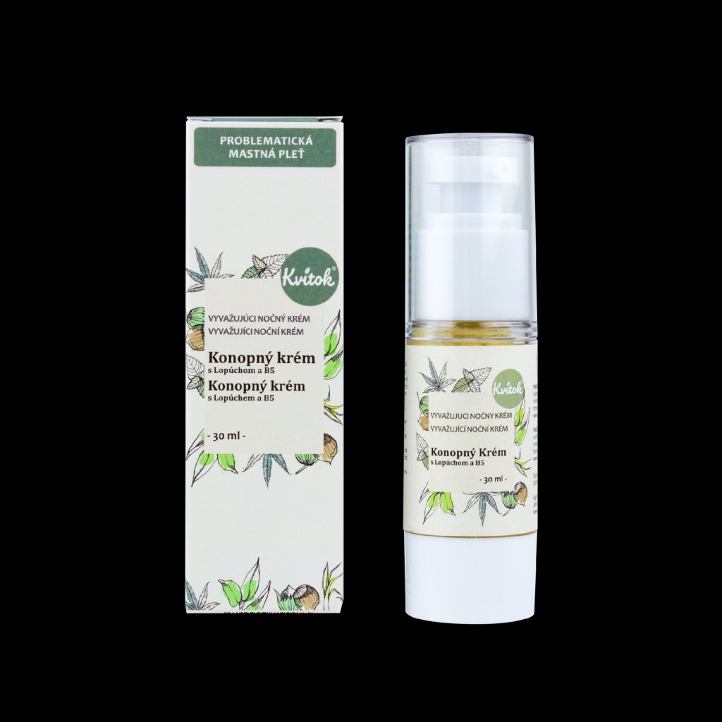 Kvitok Noční konopný krém pro mastnou pleť (30 ml) - eliminuje tvorbu akné