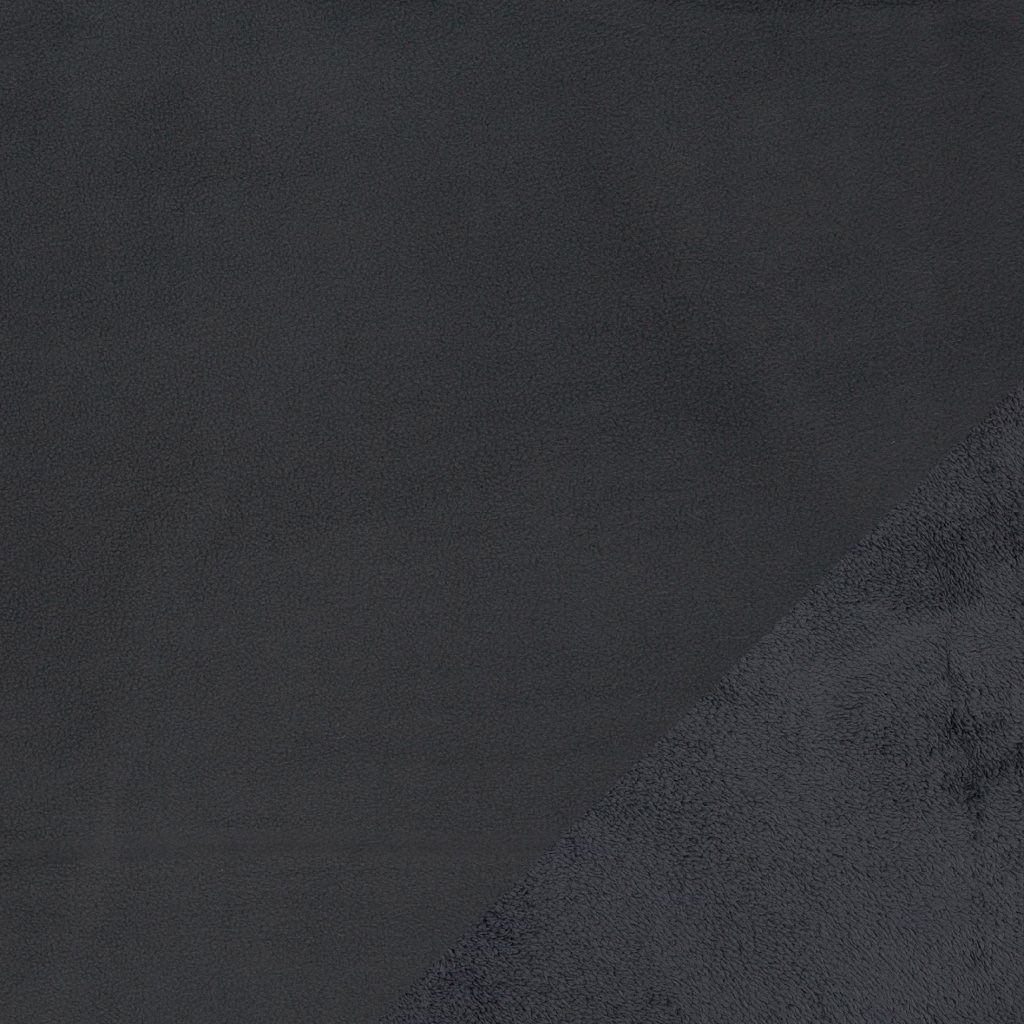 Luxusní oboustranný fleece v antracitové barvě je hitem letošního podzimu a zimy. Jedná se o metráž, kterou využijete z obou stran, takže je perfektní na šití mikin, kardiganů, overalů, šál, tunelů okolo krku, čepic. Můžete si z něj ušít i báječnou chumlací deku k televizi nebo povlak na polštářek. Je jen na vás, kterou stranu zvolíte jako lícovou. Z jedné strany je klasický měkkoučký fleece a z druhé strany je huňatý fleecový chlup. Tento materiál vás příjemně zahřeje a unosíte ho přes dvě sezóny.