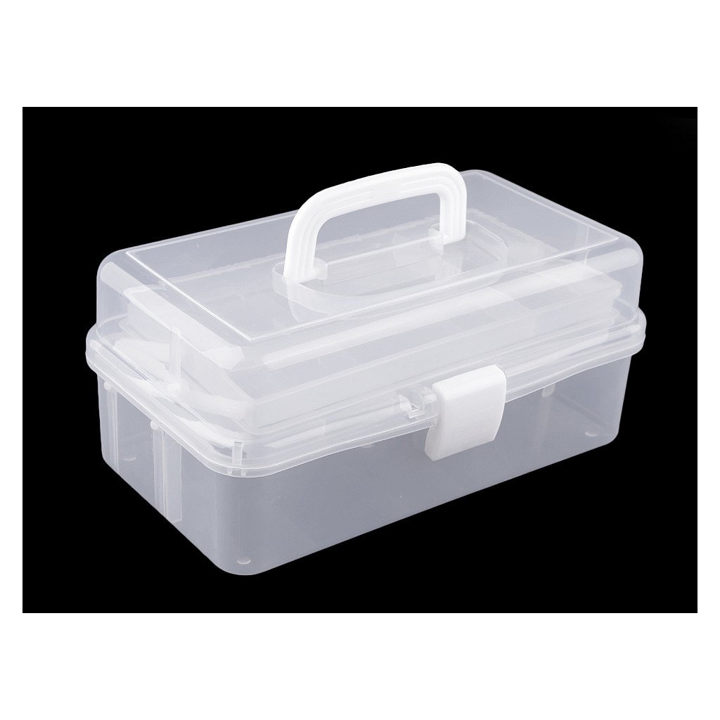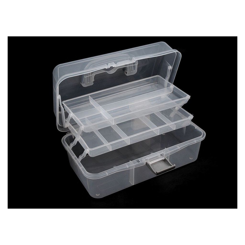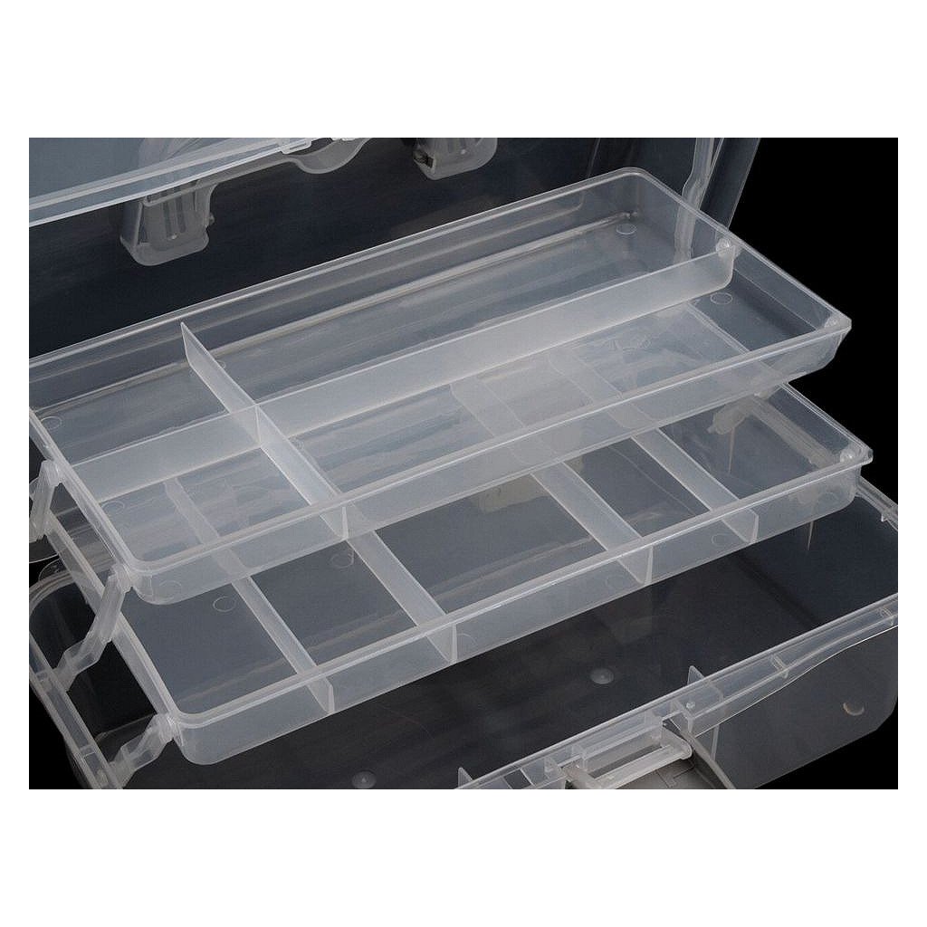 Velmi praktický pomocník při vašem skladování potřebných korálků a dalších komponentů pro kreativní tvorbu. Zásobník je vyroben z plastu, má jednoduché pákové uzavírání a rukojeť. Pořadač je možné rozložit tak, abyste měli dvě přihrádky celé otevřené. Pod přihrádkami je ještě dostatečný prostor na pomůcky. Příklopné víko chrání vše před prachem. Vnější rozměry: 150 mm výška, 200 mm šířka, 330 délka 330 mm, přihrádky jsou velké 145 x 280 mm. Vnitřní rozměry: první přihrádka je rozdělena na 4 díly (2 okna velká 205 x 70 mm, 2 okna velká 70 x 70 mm), druhá přihrádka je rozdělena na 5 dílů (1 okno velké 80 x 145 mm, 2 okna velké 45 x 145 mm, 2 okna velká 50 x 145 mm).