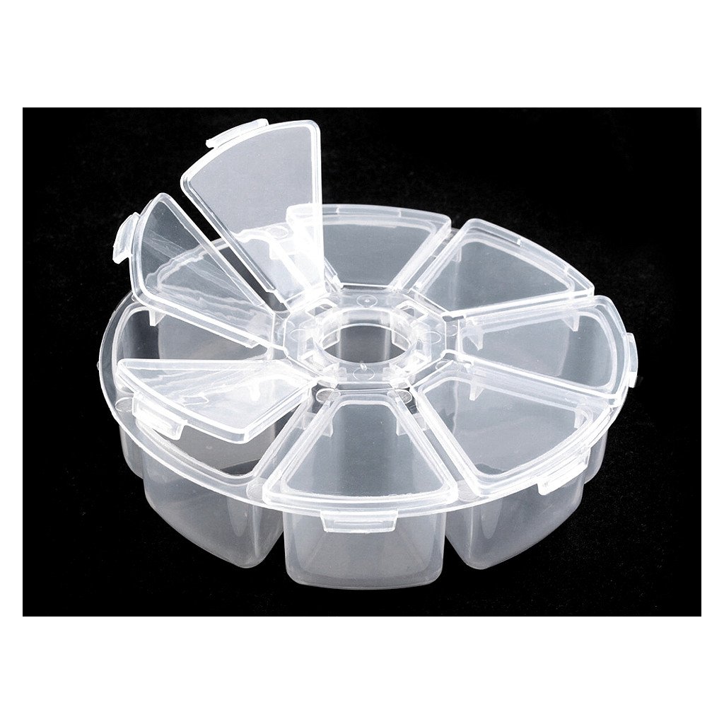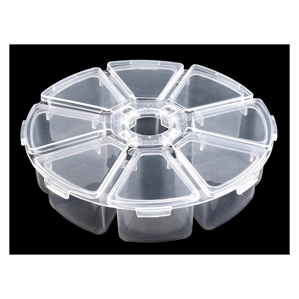 Zásobník se dá použít na uskladnění korálků, flitrů či bižuterních komponentů. Je vhodný i na uskladnění bižuterie. U té doporučujeme zásobník přechovávat na tmavém místě, jelikož bižuterie na světle časem koroduje.