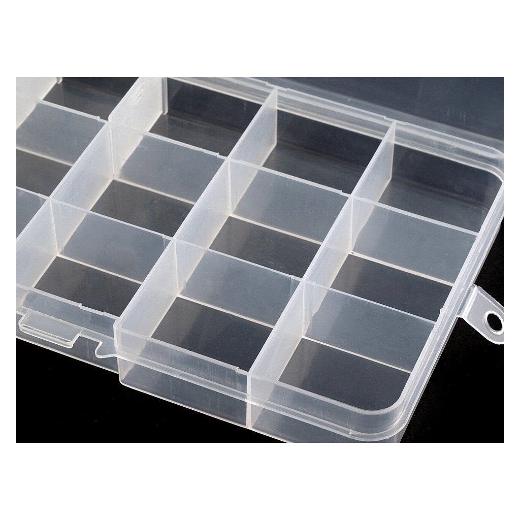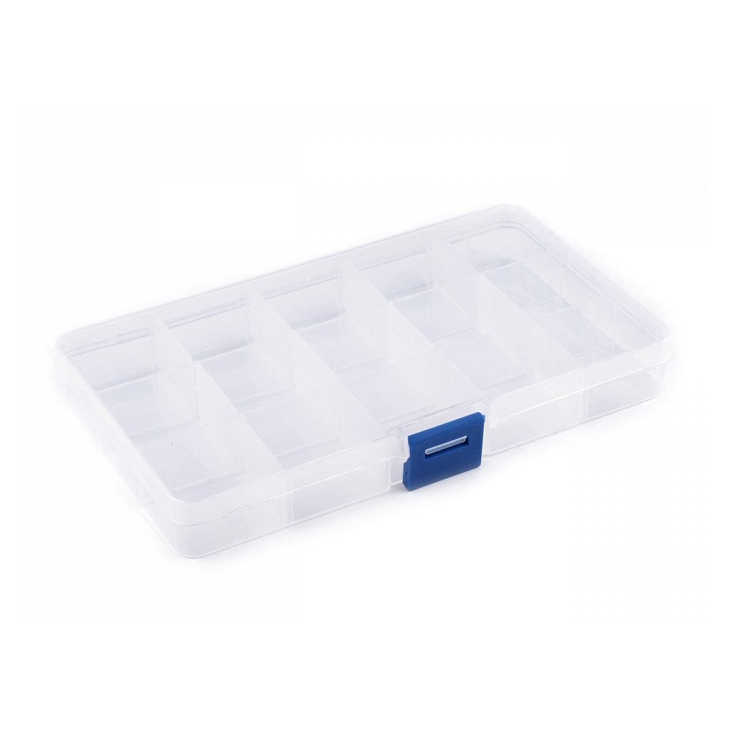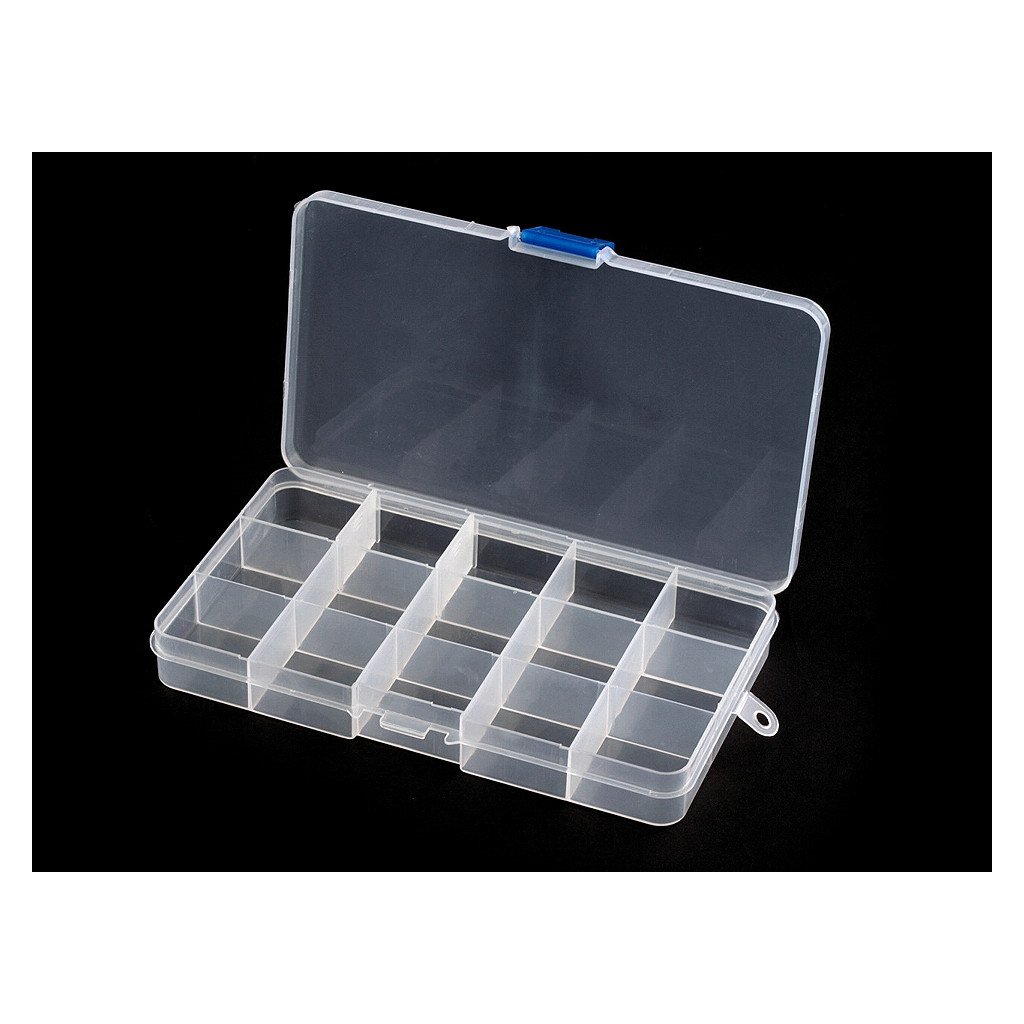 Plastovou krabičku ocení hlavně korálkářky. Má 2 pevné přepážky 19x168 mm a 12 přepážek 19x30 mm. Díky nim může vzniknout v krabičce až 15 oddělení. Můžete si vytvořit vlastní počet oddělení podle potřeby. Obsah v přihrádkách se nepromíchá.