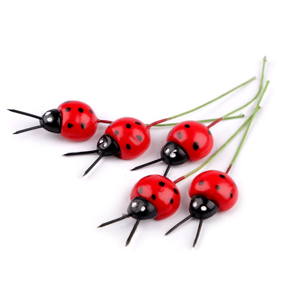 Dekorační berušky jsou připevněné k ohebnému floristickému drátku. Vyniknou zakomponované v květinových vazbách, aranžmá, věncích, truhlících, květináčích apod.