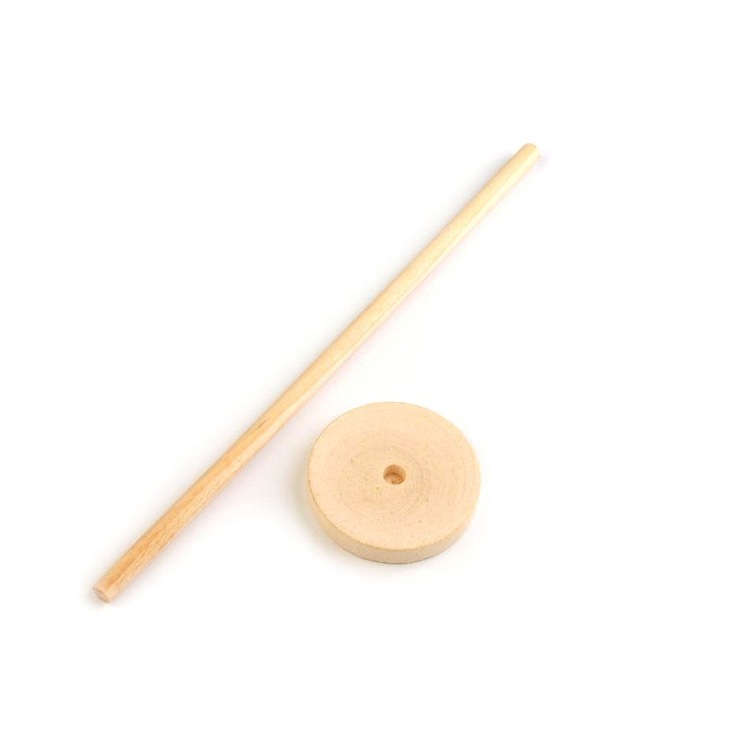 Stojan dodáváme rozložený, tyčka se zapíchne do dolního kolečka. Doporučujeme ji při složení vlepit.