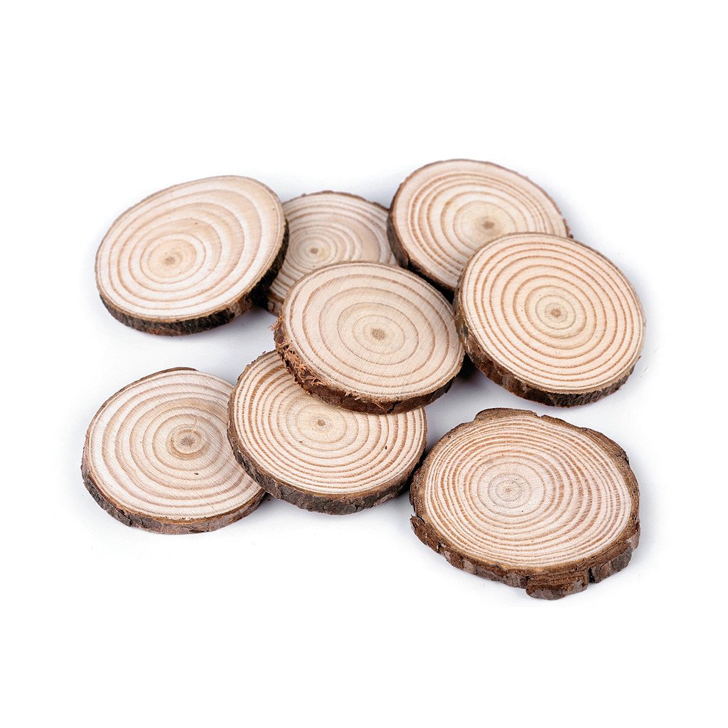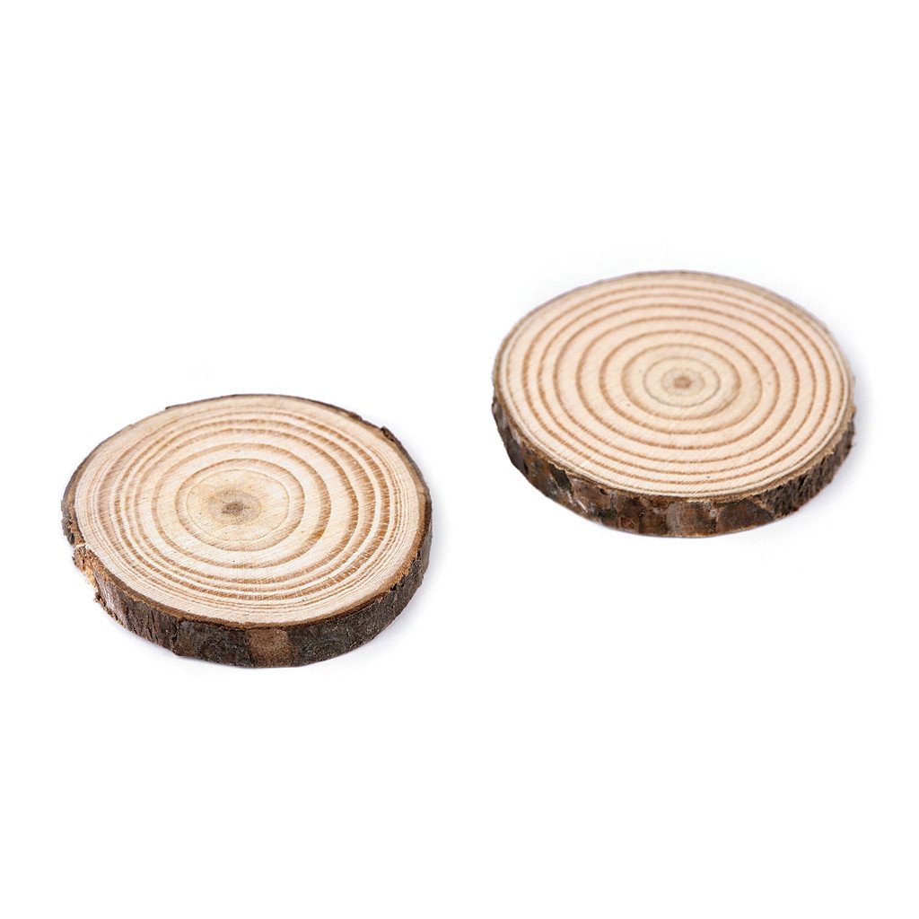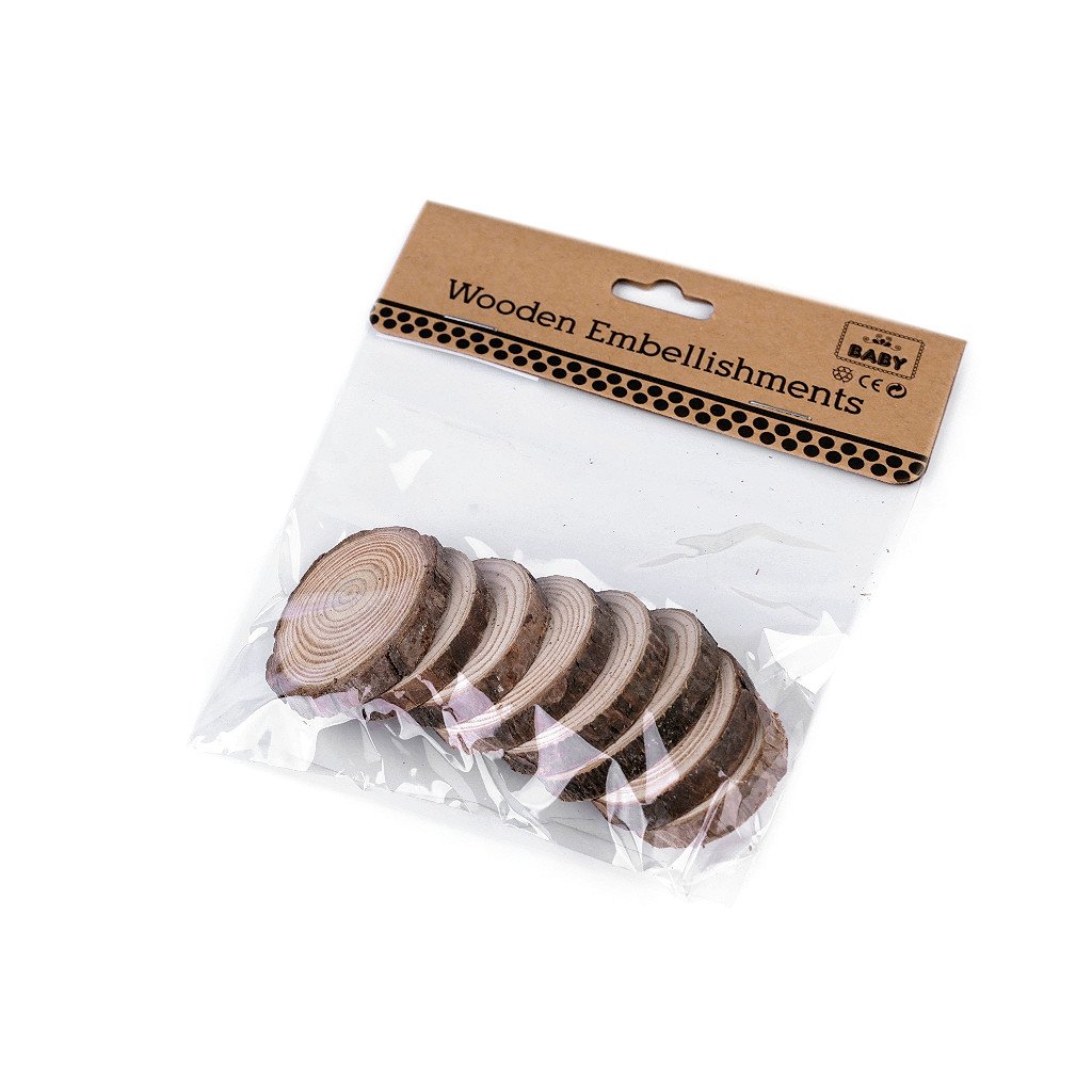 Přírodní dřevěná kolečka se hodí k dalšímu dotvoření. Jsou rovná, po obvodu mají kůru. Nejsou barvená ani lakovaná, každý kus se může lišit jak barvou, tak kresbou dřeva, velikostí i tloušťkou.