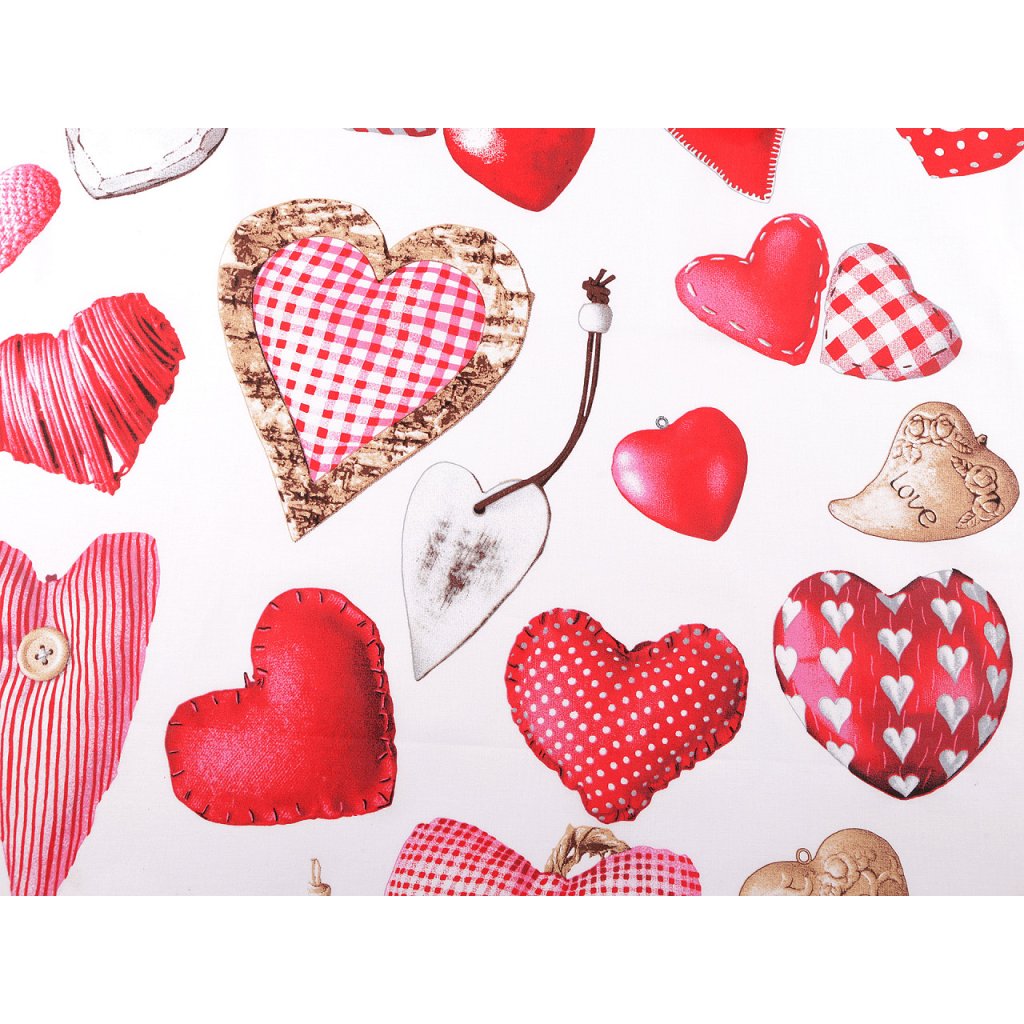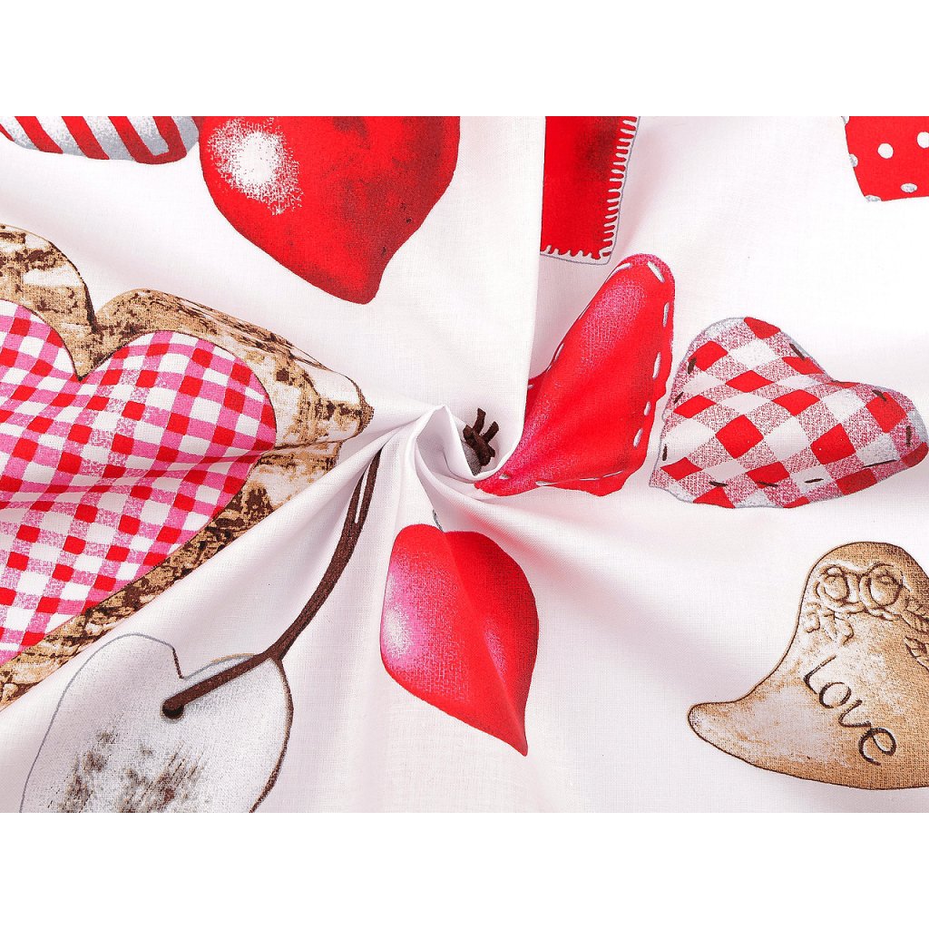 Bavlněnou látku využijete na šití ubrusů, povlečení, zástěr, polštářů či tašek a pytlíků. Dekorativní vzor se srdíčky v různých designech a stylizacích přidá do vašeho domova nádech romantiky a útulnosti. Je vhodná i na valentýnské kreativní projekty.