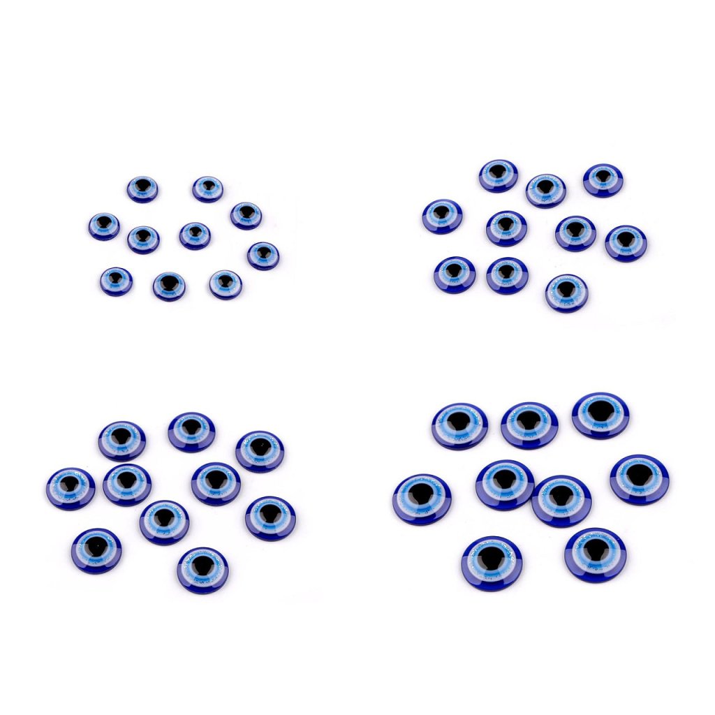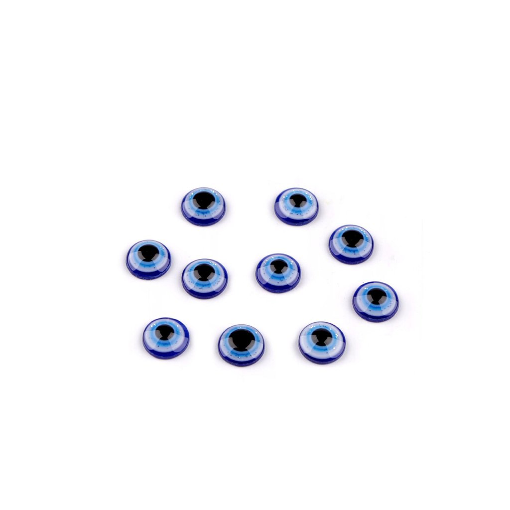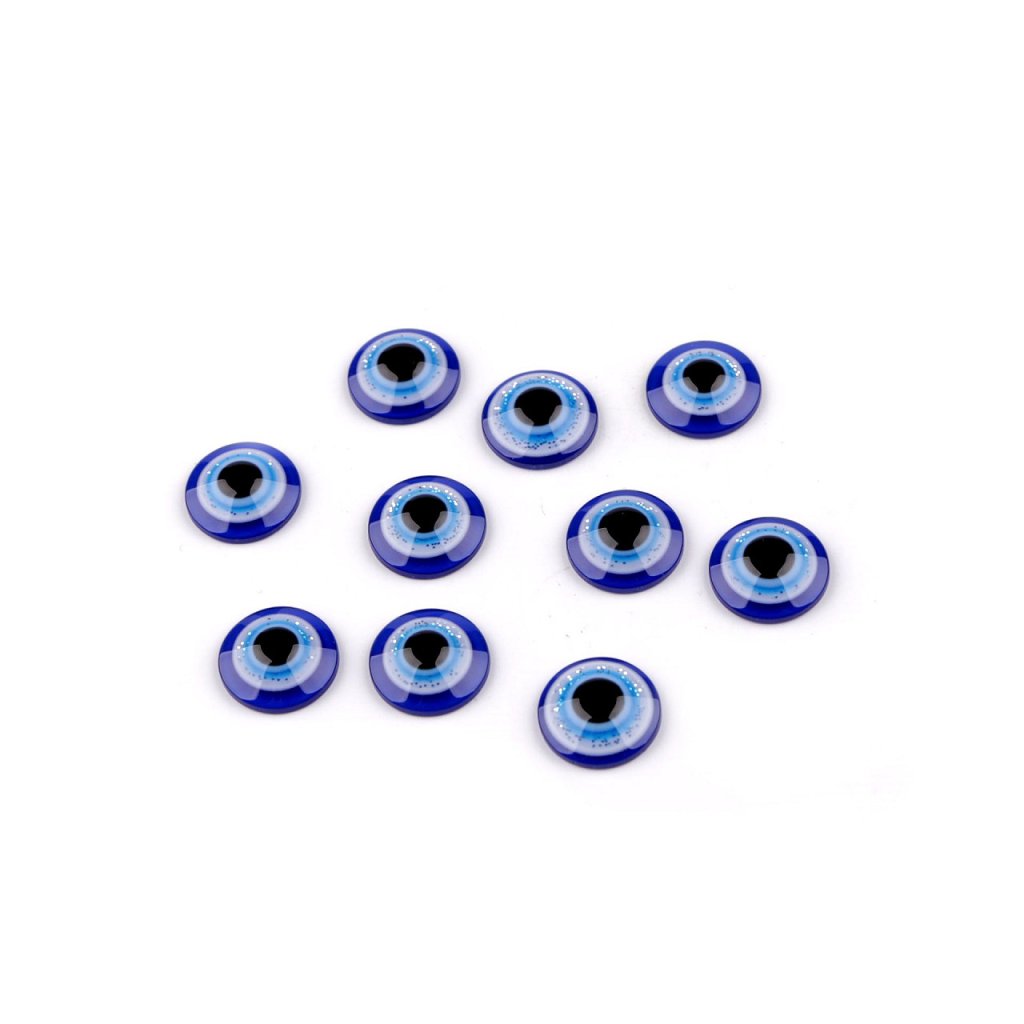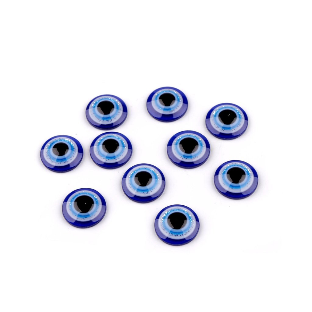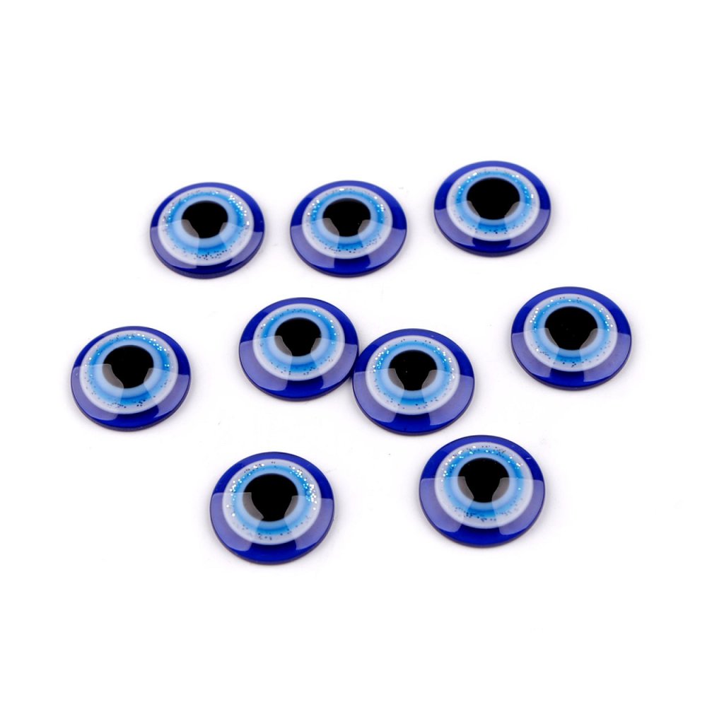 Kulaté oči s motivem Alláhova oka mají kvalitní zpracování. Díky zalitým glitrům se jemně třpytí. Mají tvar vypouklé čočky, obrázek oka krásně vynikne. Využijete je na tvorbu různých postaviček a zvířátek. Pro jejich přilepení je vhodné použít lepidlo na lepení kamínků. S oblibou se používají i na výrobu bižuterie, jako kabošony jsou vhodné k nalepení do kovového lůžka nebo k obšití korálky a rokajlem. Velice působivé jsou v drátovaných špercích.