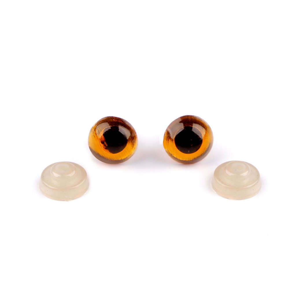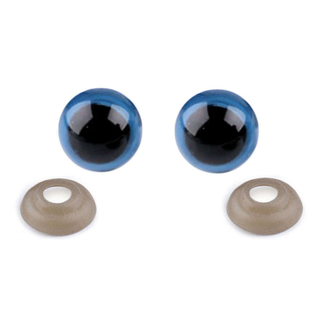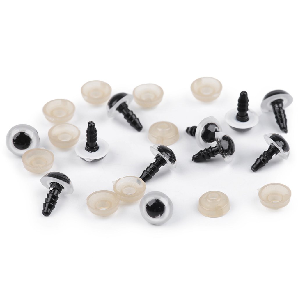 Polokulaté plastové oči využijete pro výrobu různých postaviček a zvířátek z textilu, např. plyšáků. Pro pevné přichycení mají oči na vrutu závity, které se pevně uchytí v textilu. Z druhé strany se nacvakne pojistka, která oči bezpečně připevní na místo.