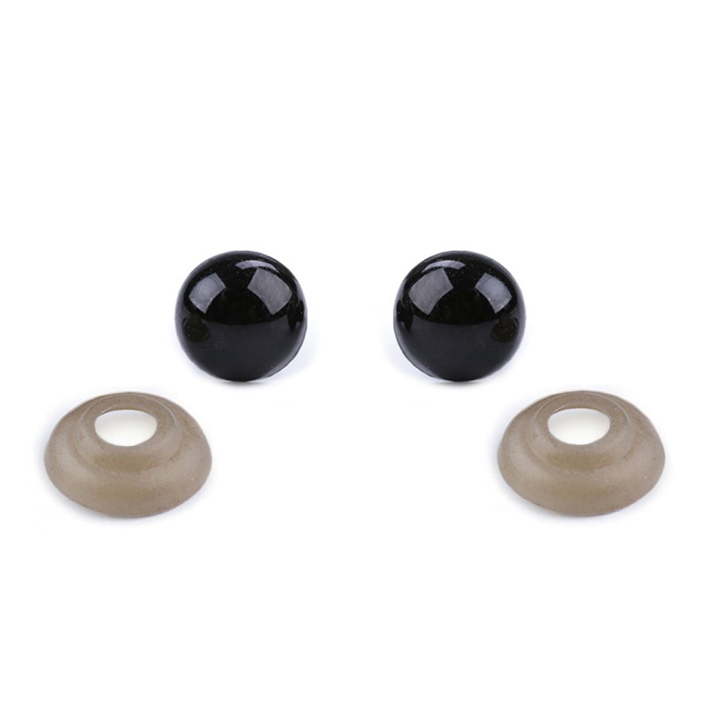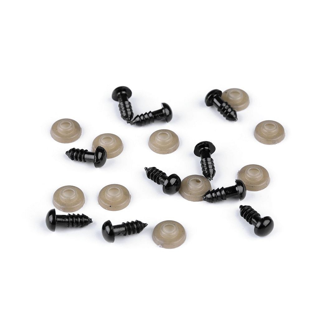 Polokulatá plastová očička využijete při výrobě nejrůznějších postaviček či zvířátek. Očka mají závit, který se provleče materiálem, a z jeho druhé strany se pak nacvakne pojistka, která oči bezpečně připevní na místo.