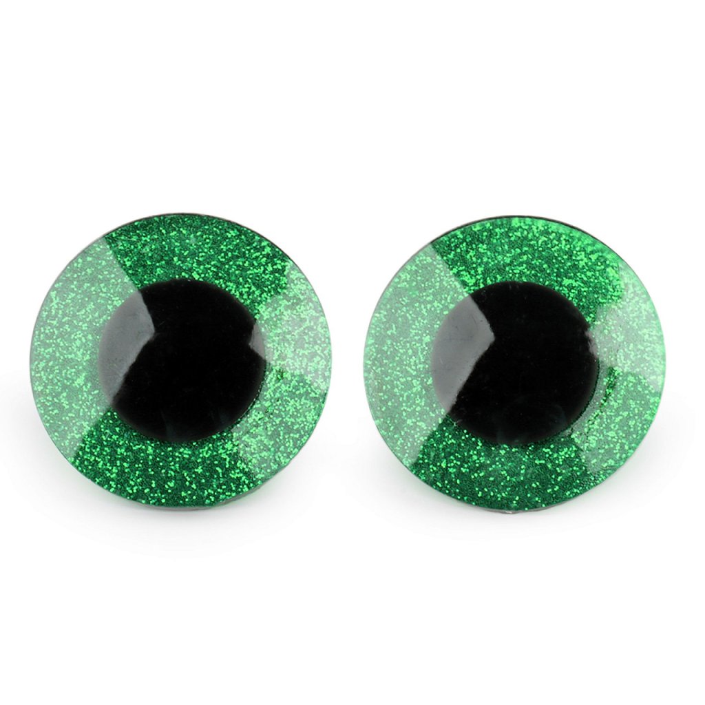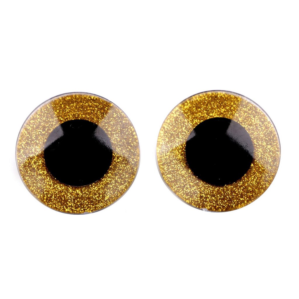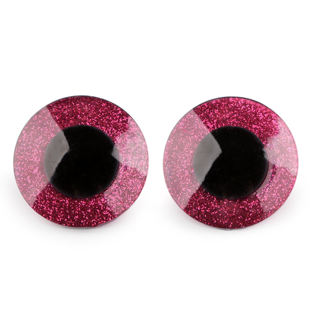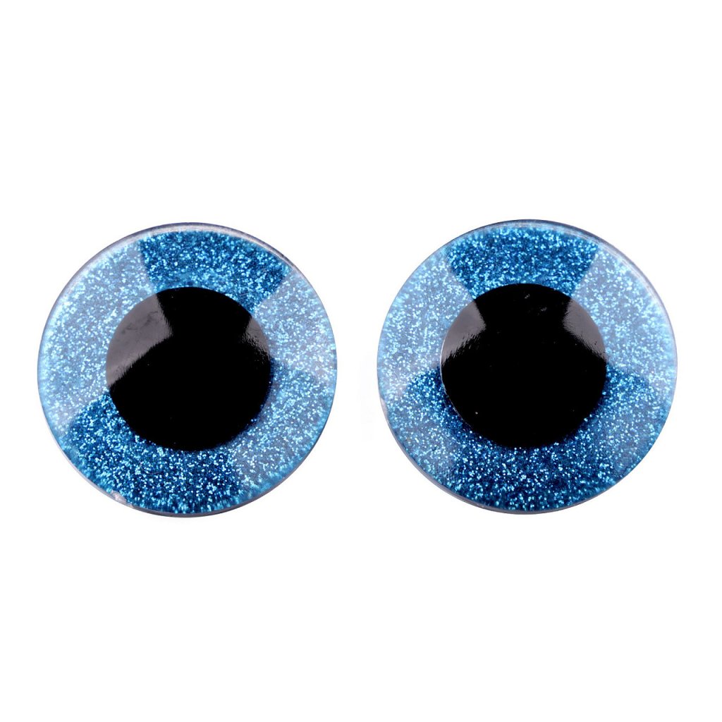 Velké polokulaté oči se třpytivou duhovkou umocní výraz vašich nejrůznějších postaviček či zvířátek. Mají závit, na který se nasadí duhovka, následně se provleče materiálem, a z druhé strany se pak nacvakne pojistka, která oči bezpečně připevní na místo. Pokud nebudete chtít, aby se oči třpytily, nemusíte duhovku použít, v tom případě zůstane duhovka transparentní.