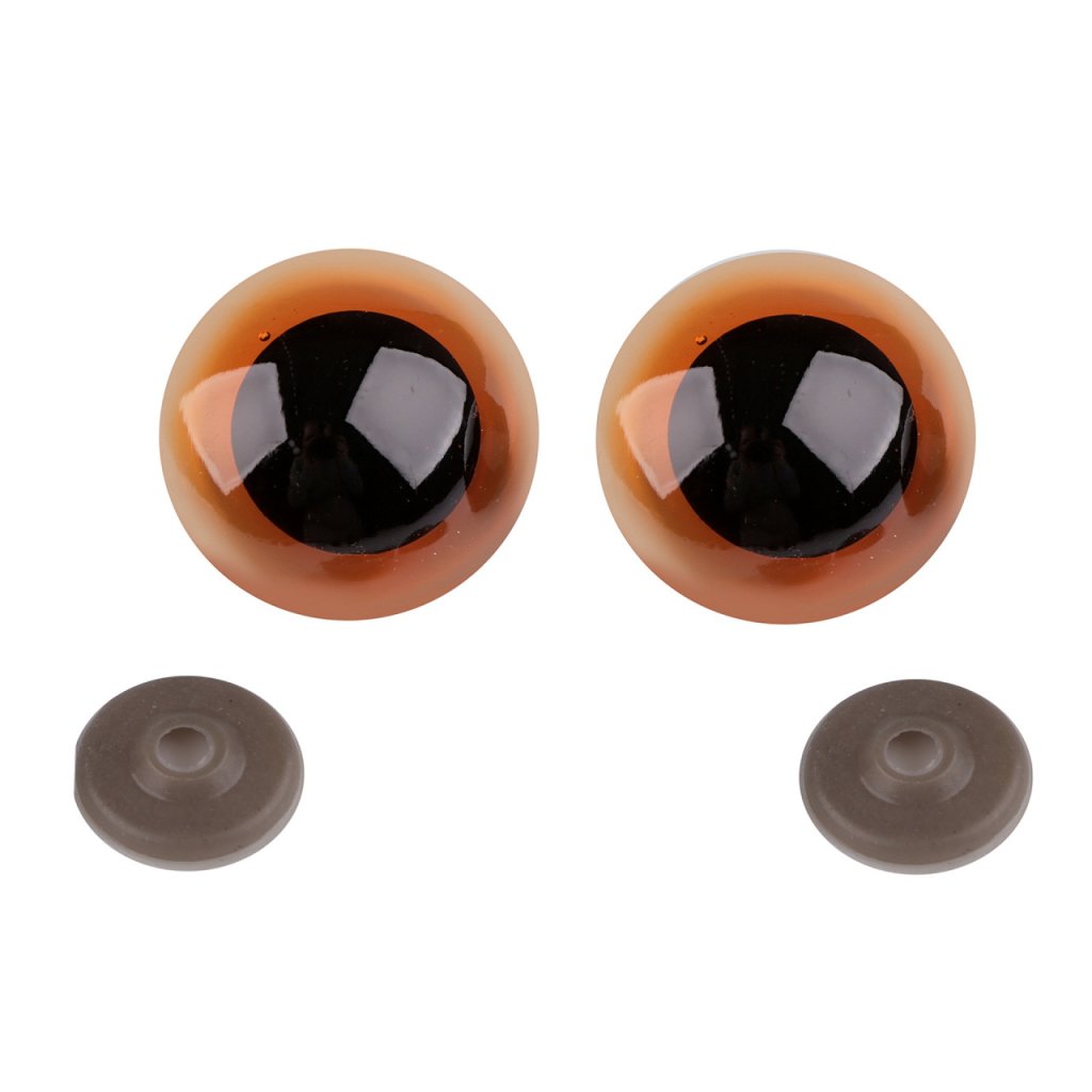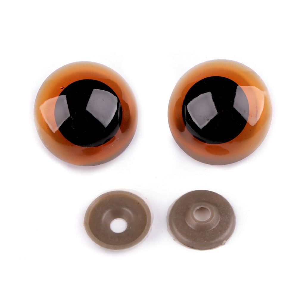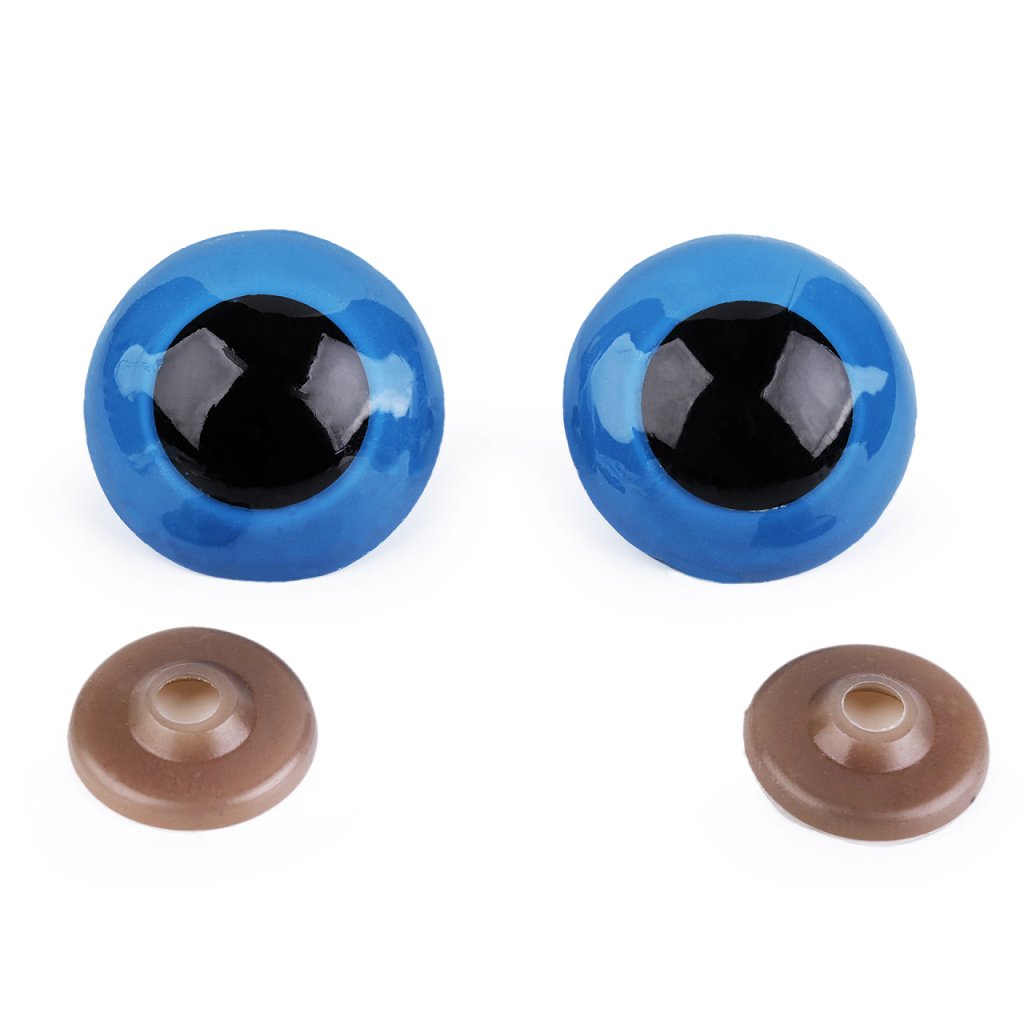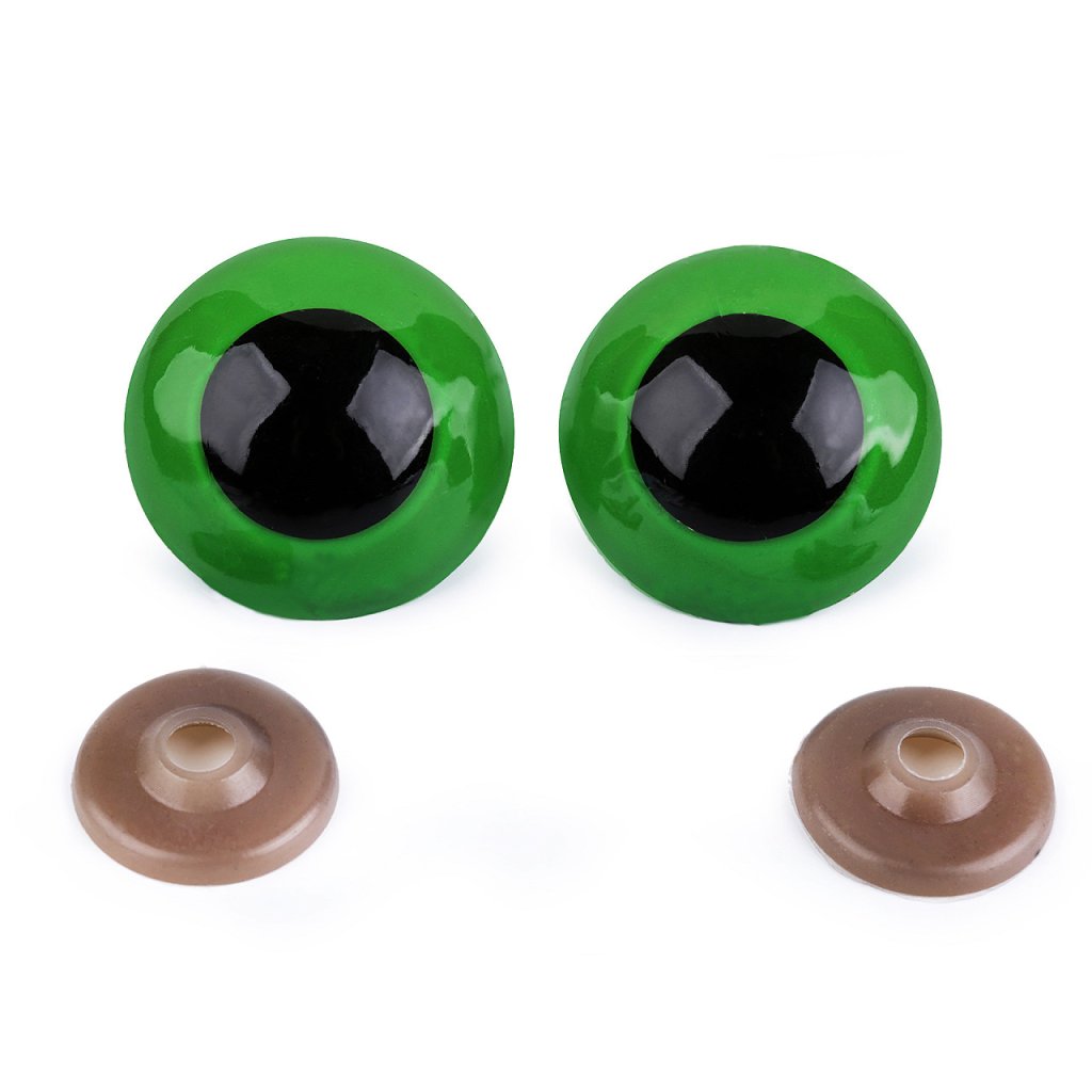 Velké polokulaté oči s barevnou duhovkou použijete na výrobu nejrůznějších postaviček a zvířat. Mají závit, který se provleče materiálem, a z druhé strany se pak nacvakne pojistka, která oči bezpečně připevní na místo.