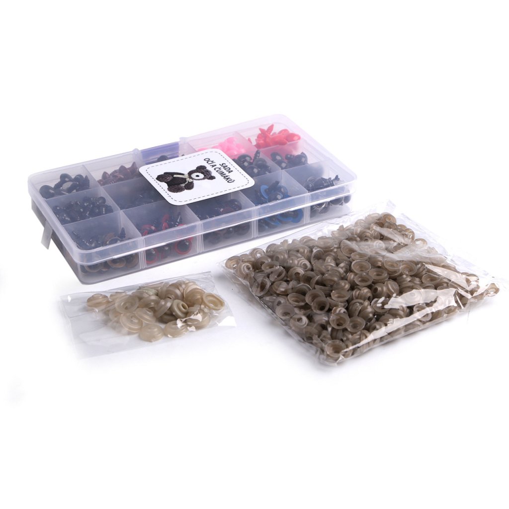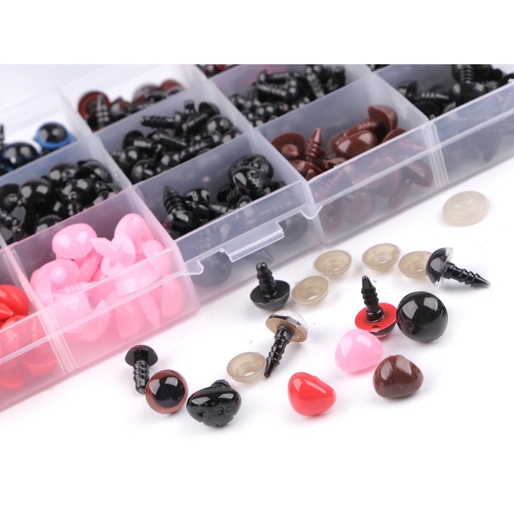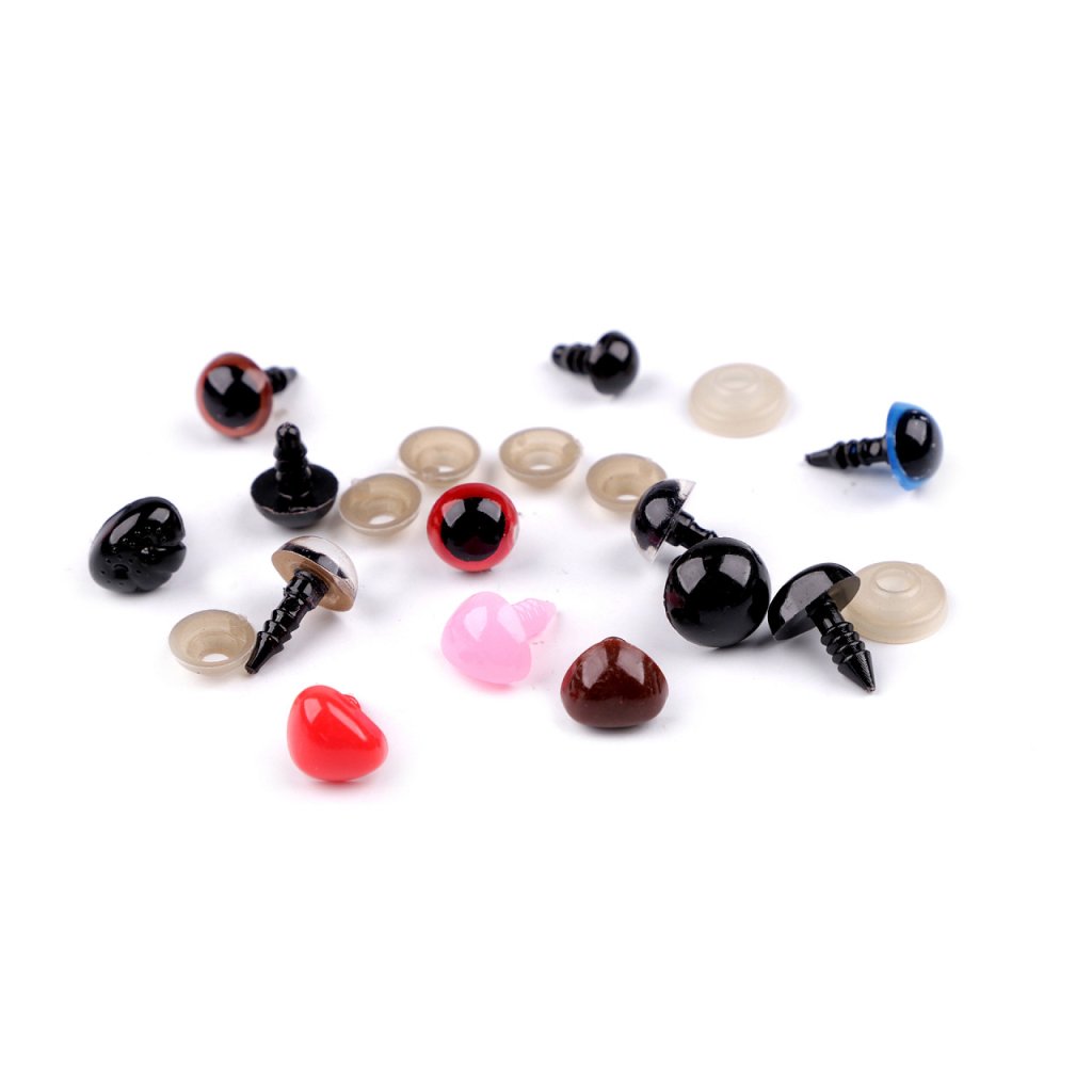 Souprava bezpečnostních očí a čumáků je ideální pro kreativce, kteří rádi vyráběji zvířátka a dekorační postavičky. Mají závit, který se provleče materiálem, a z druhé strany se pak nacvakne pojistka, která oči a čumáky bezpečně připevní na místo.