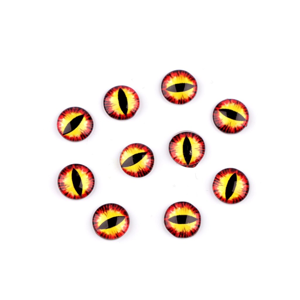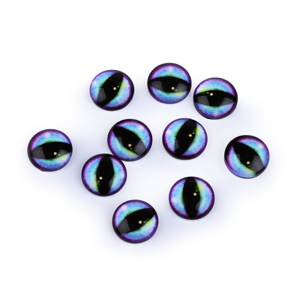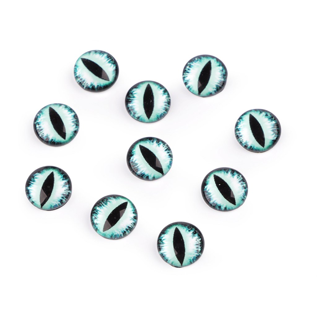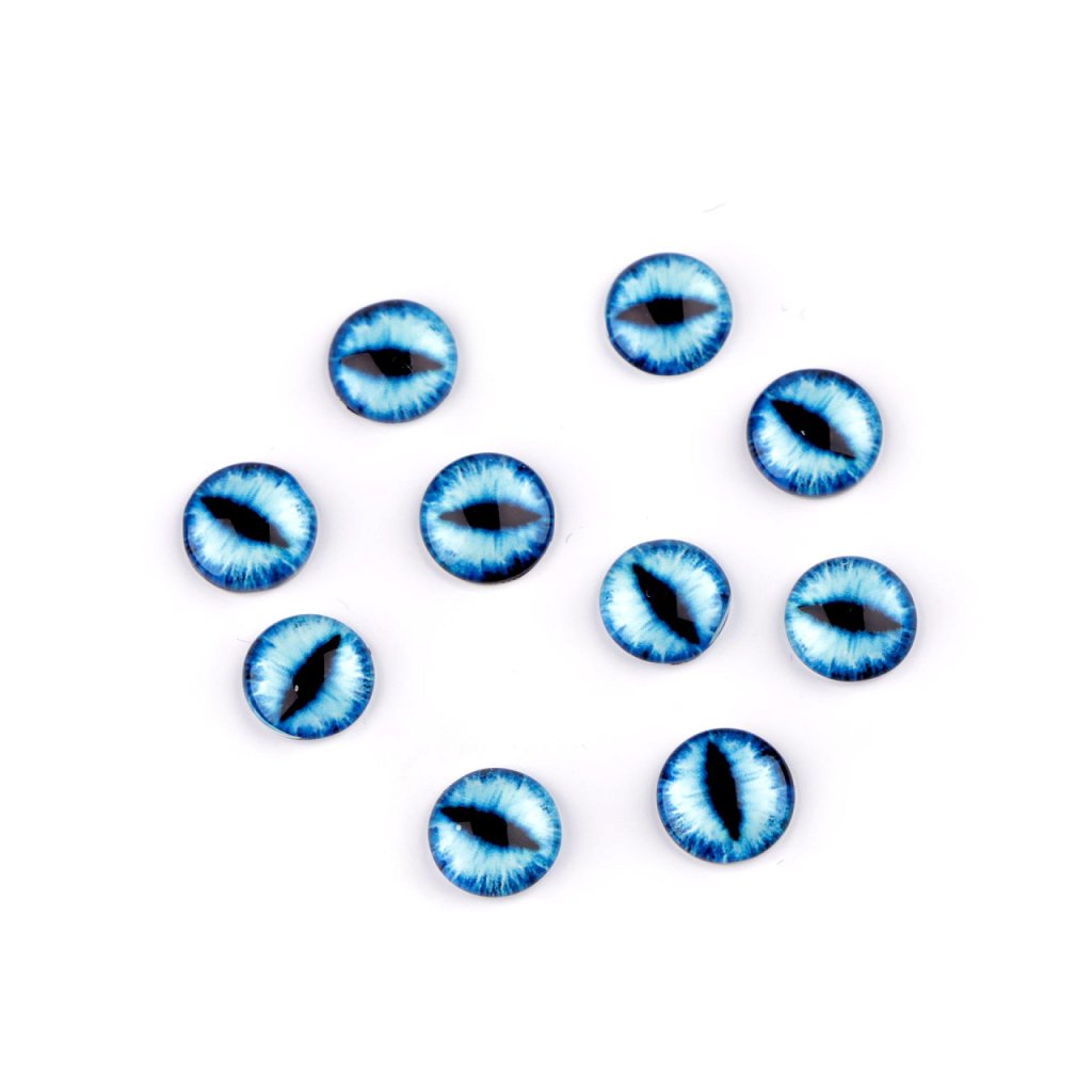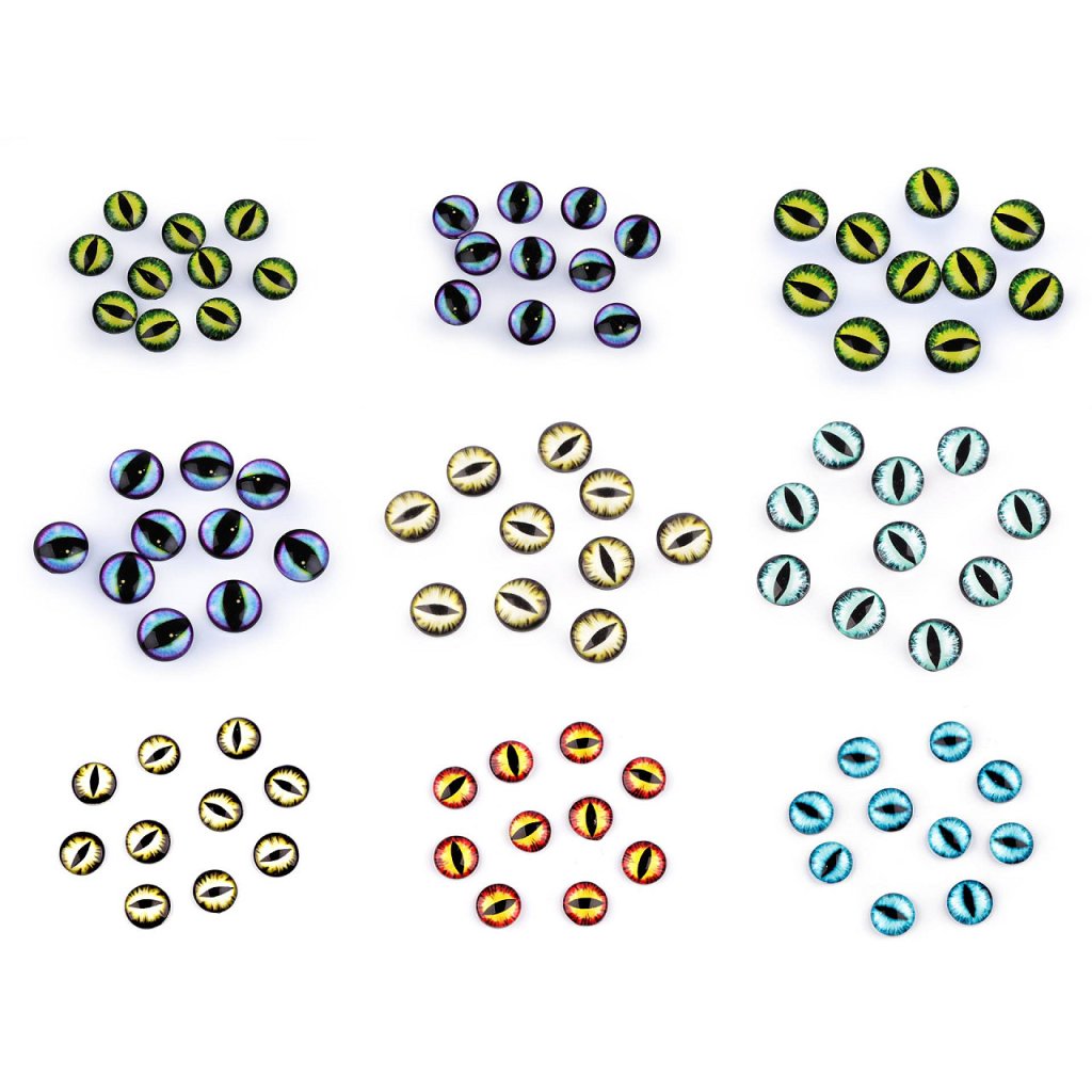 Kulaté skleněné oči s motivem kočičího / dračího oka mají kvalitní zpracování. Díky tvaru vypouklé čočky obrázek oka krásně vynikne. Využijete je na tvorbu různých postaviček a zvířátek. Pro jejich přilepení je vhodné použít lepidlo na lepení kamínků. S oblibou se používají i na výrobu bižuterie, jako kabošony jsou vhodné k nalepení do kovového lůžka nebo k obšití korálky a rokajlem. Velice působivé jsou v drátovaných špercích.