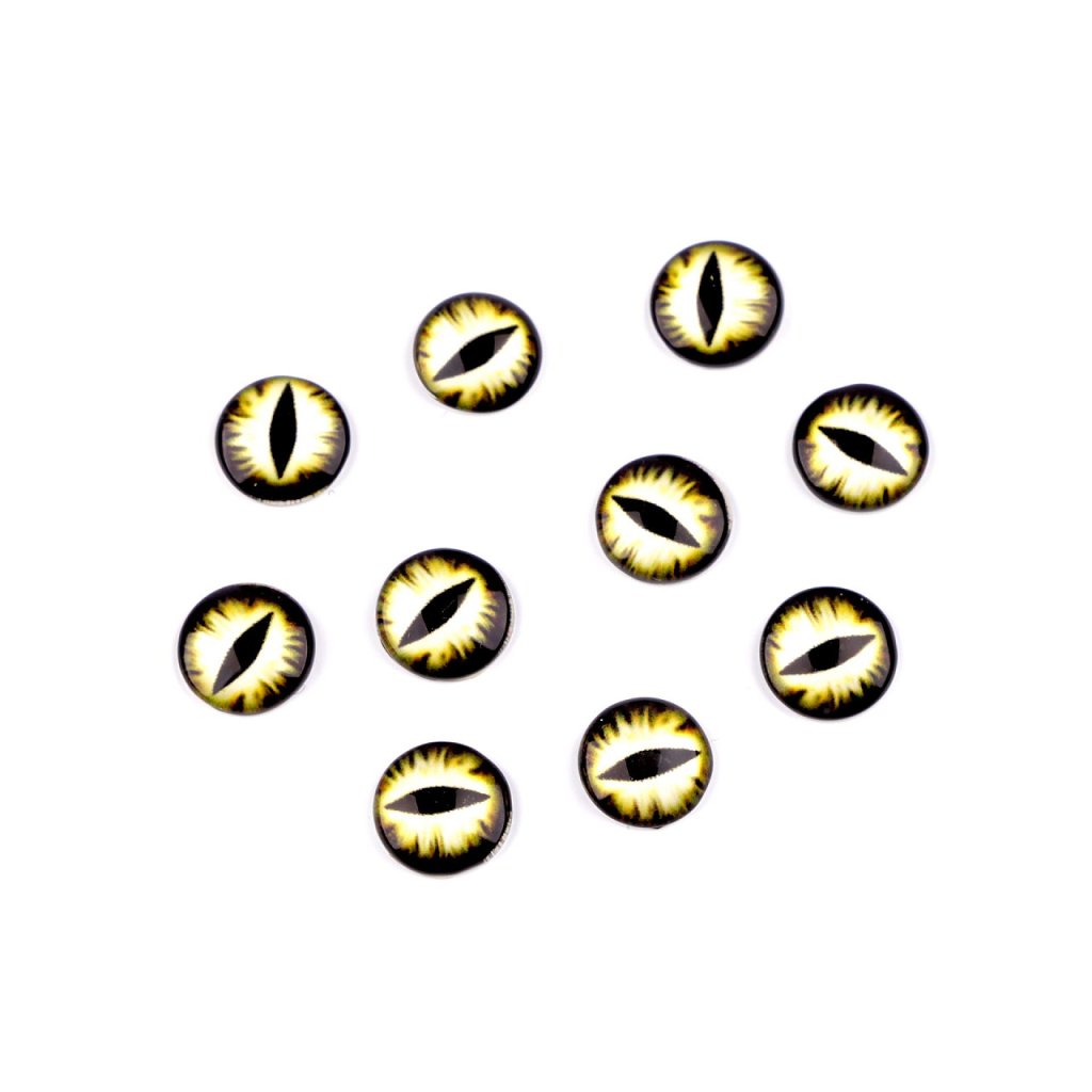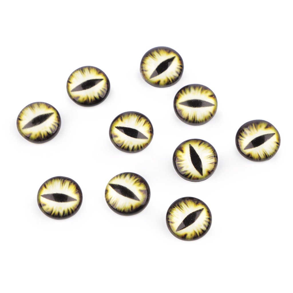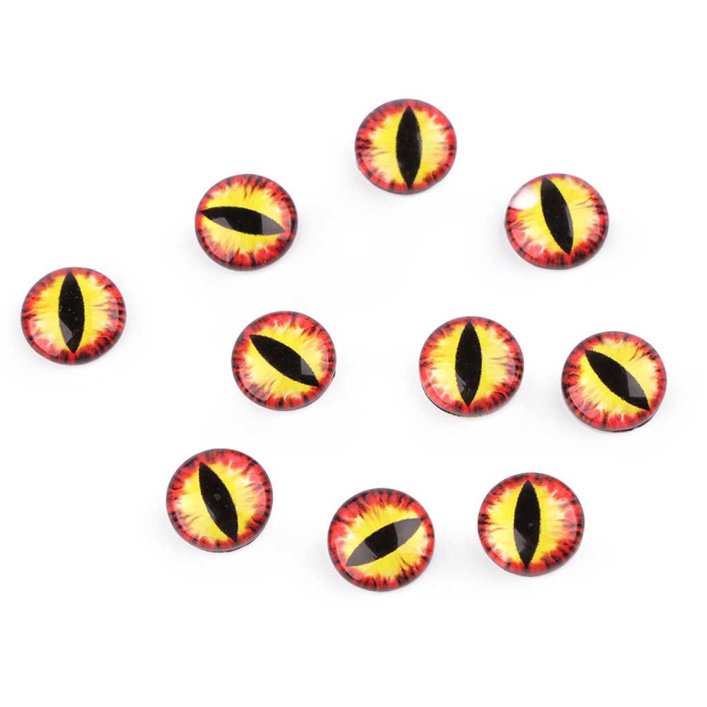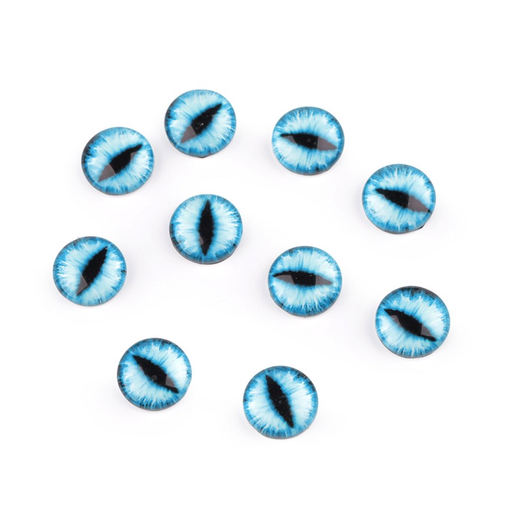 Kulaté skleněné oči s motivem kočičího / dračího oka mají kvalitní zpracování. Díky tvaru vypouklé čočky obrázek oka krásně vynikne. Využijete je na tvorbu různých postaviček a zvířátek. Pro jejich přilepení je vhodné použít lepidlo na lepení kamínků. S oblibou se používají i na výrobu bižuterie, jako kabošony jsou vhodné k nalepení do kovového lůžka nebo k obšití korálky a rokajlem. Velice působivé jsou v drátovaných špercích.