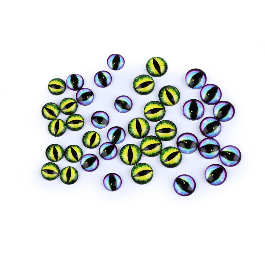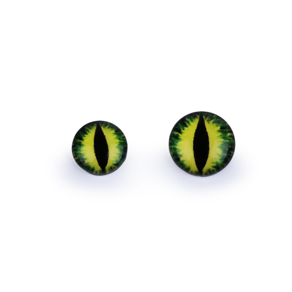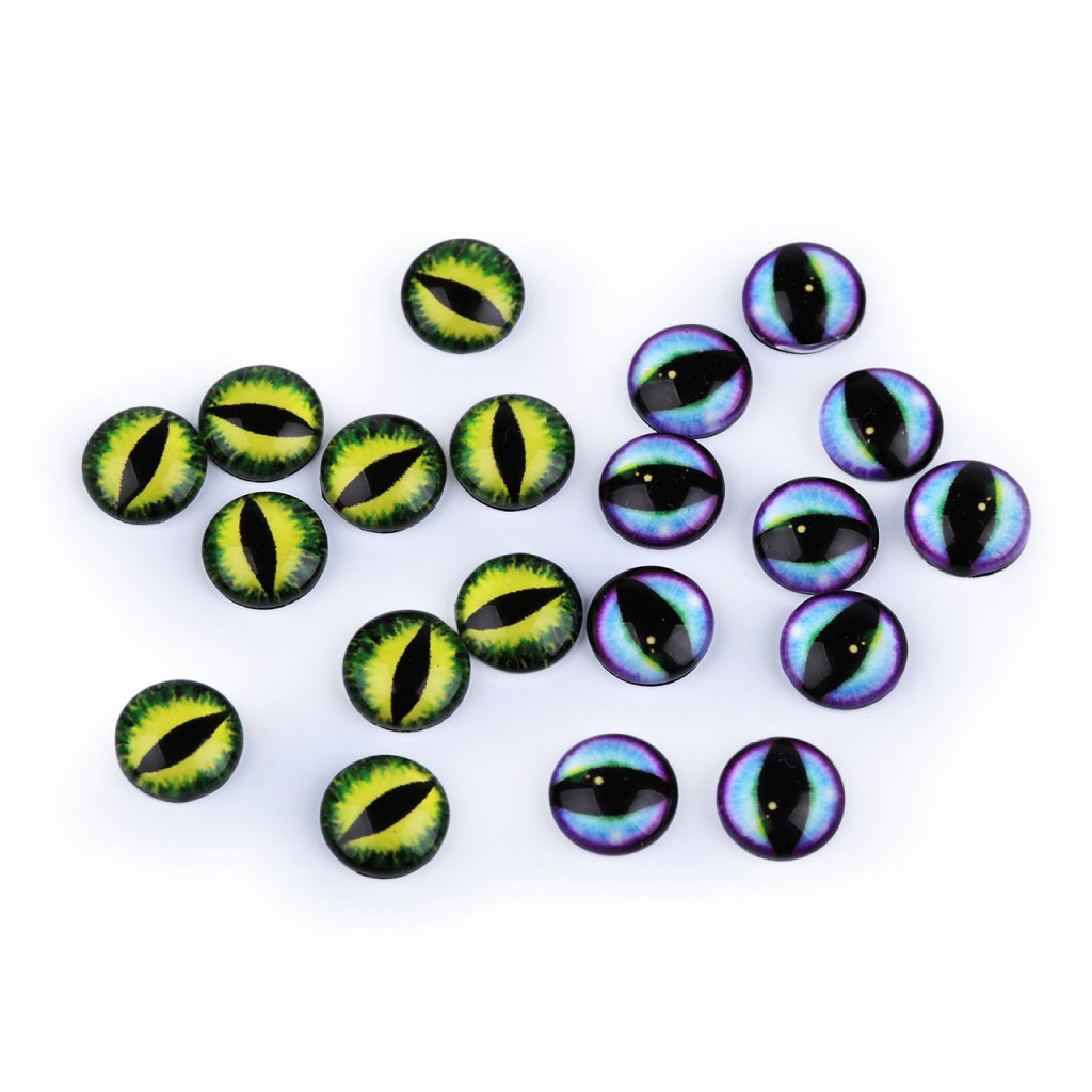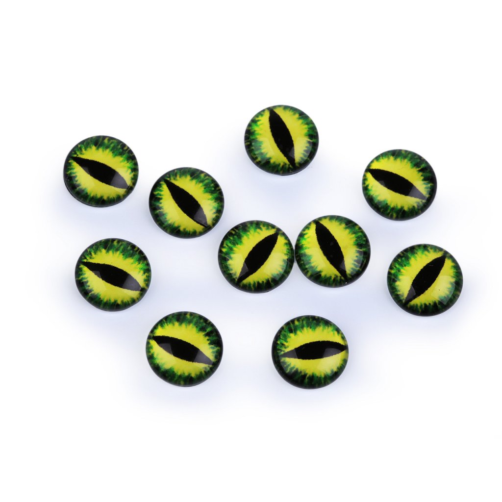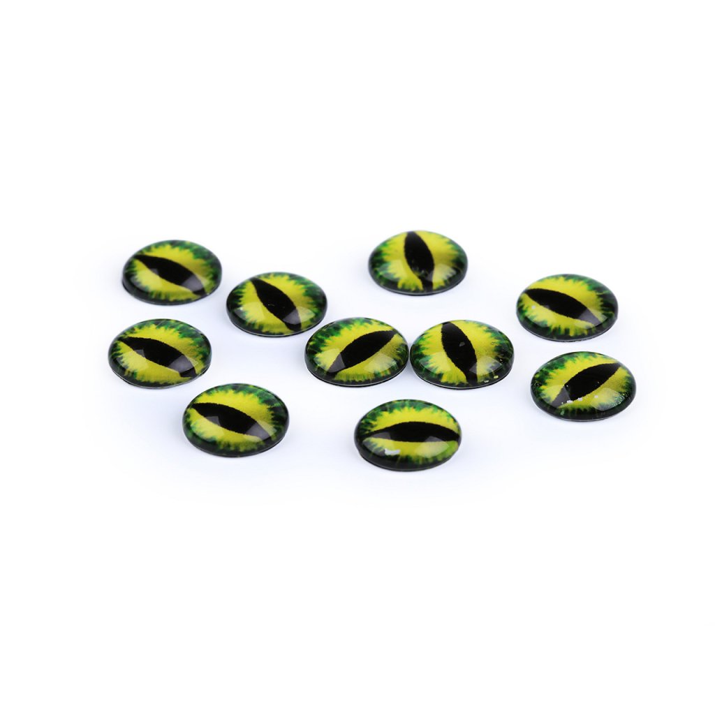 Kulaté skleněné oči s motivem kočičího / dračího oka mají kvalitní zpracování. Díky tvaru vypouklé čočky obrázek oka krásně vynikne. Využijete je na tvorbu různých postaviček a zvířátek. Pro jejich přilepení je vhodné použít lepidlo na lepení kamínků. S oblibou se používají i na výrobu bižuterie, jako kabošony jsou vhodné k nalepení do kovového lůžka nebo k obšití korálky a rokajlem. Velice působivé jsou v drátovaných špercích.