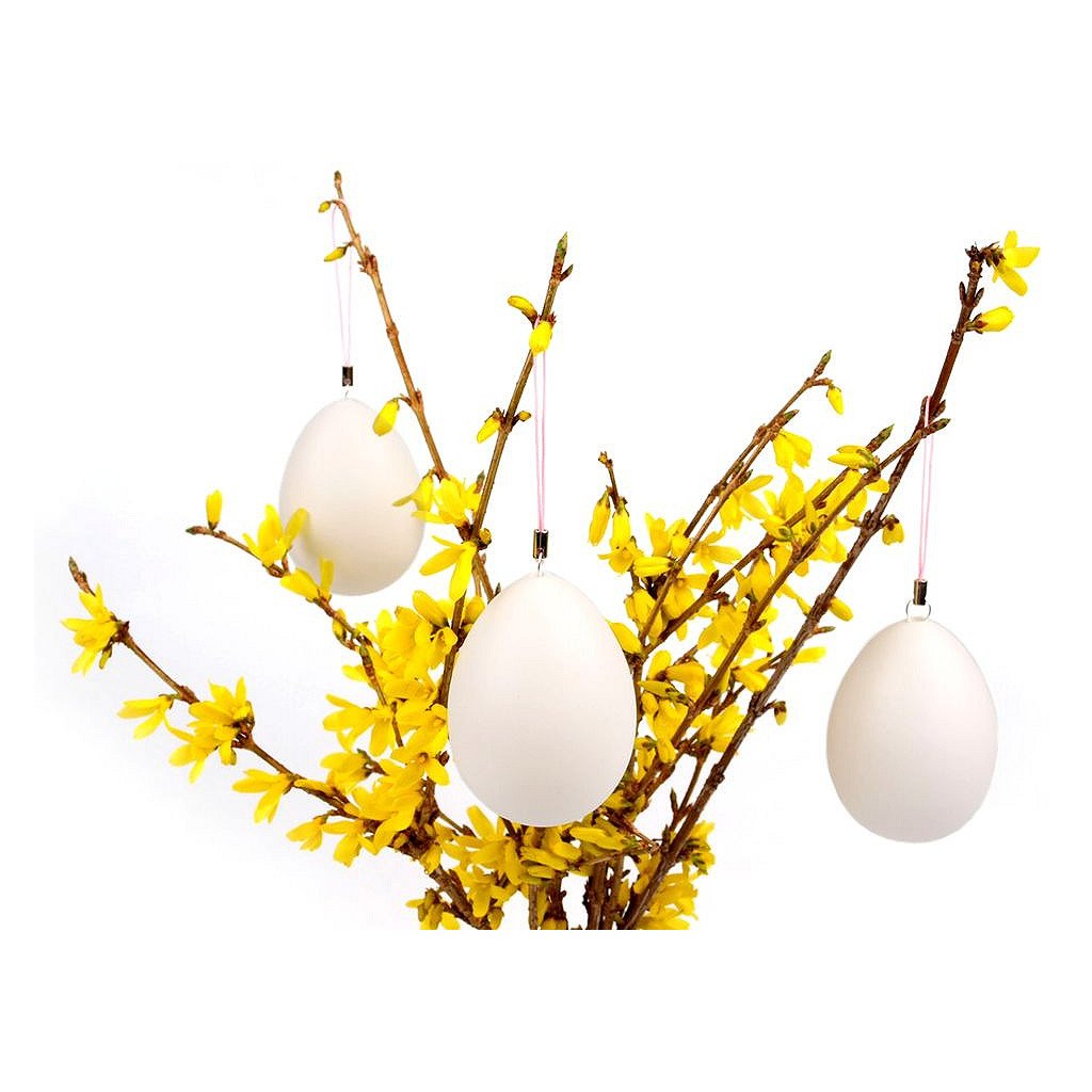 Dekorační vejce je kvalitní a vyrobené z plastu. Jedná se o polotovar, který můžete dále zdobit. Díky připevněnému poutku (dlouhému 5 cm) ho můžete kamkoliv pověsit, například na věnce či větvičky.