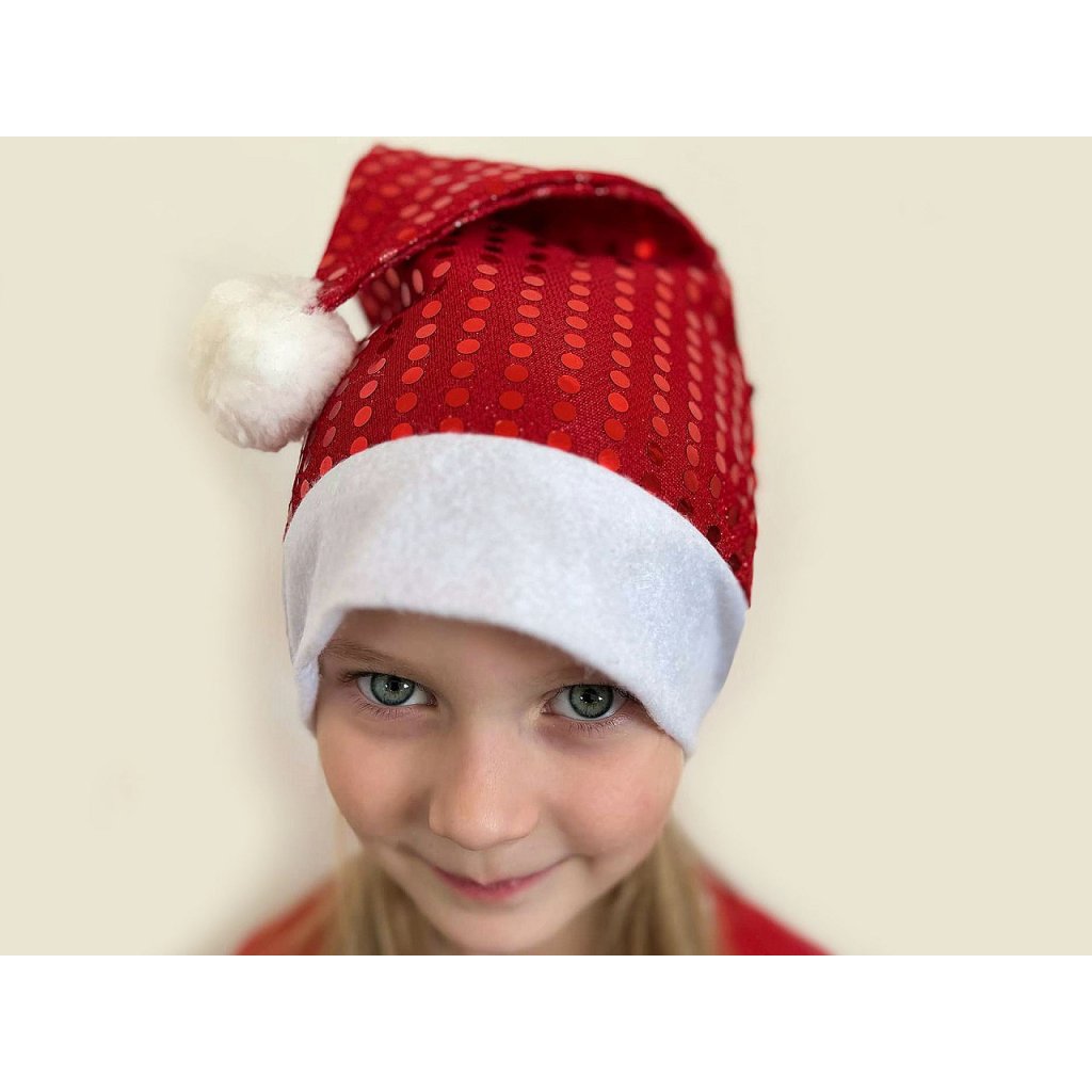 Vánoční čepice skvěle podtrhne sváteční atmosféru. Díky lesklým pajetkám je nepřehlédnutelná. Užijete si s ní spoustu legrace při focení, na vánoční párty nebo karnevalu. Je vyrobená z měkkého příjemného materiálu.
