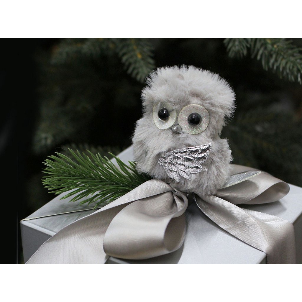 Roztomilá sovička ozdobí vánoční stromečky, věnce, větvičky ve váze, dárky apod. Má jemný plyšový povrch a efektní detaily v podobě lurexových křídel a třpytivého ocásku.