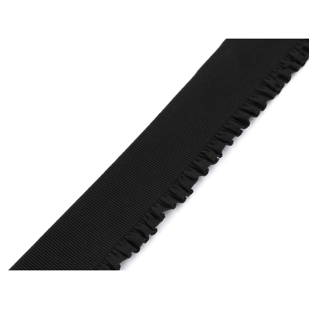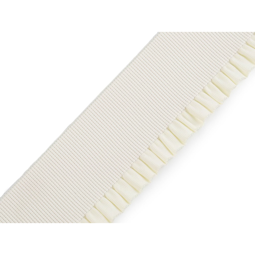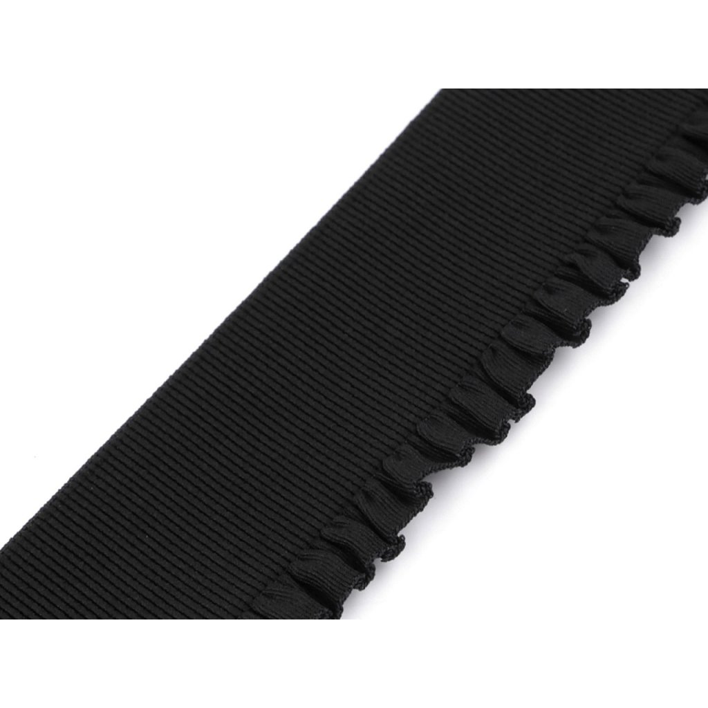 Pruženka má decentní řasený okraj. Ozdobíte s ní šaty, kalhoty, sukně, saka apod. Je vhodná i na výrobu pásků k halenkám, šatům či svetrům.