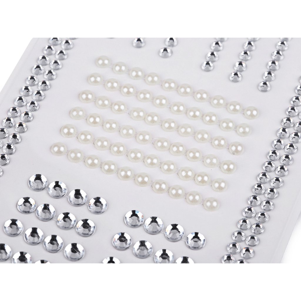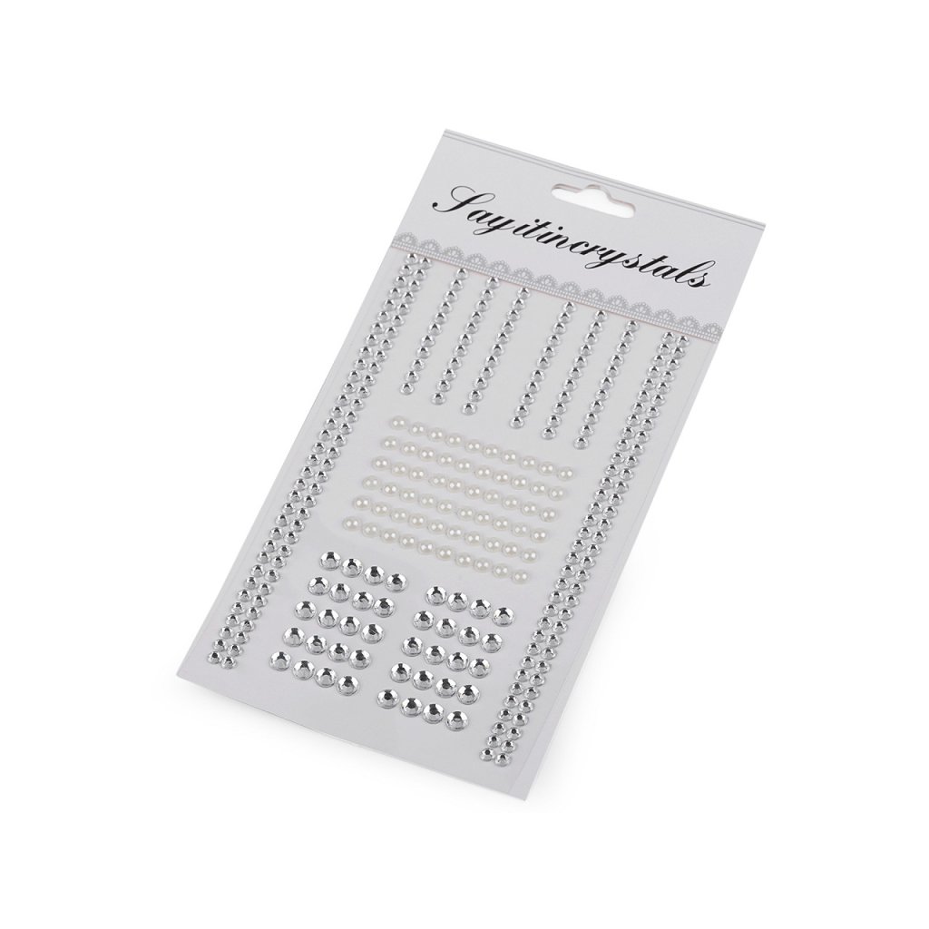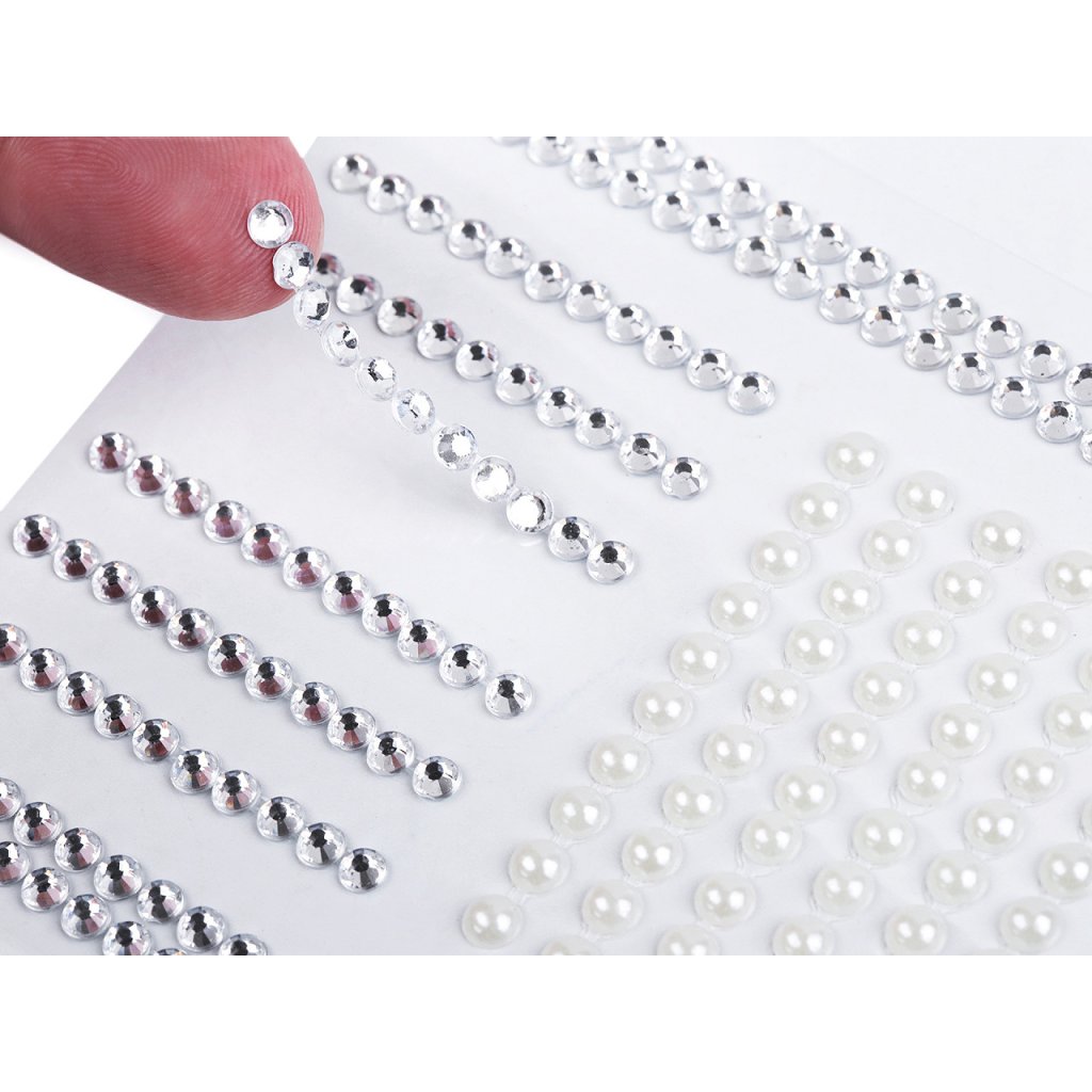 Samolepicí kamínky a perly ocení všichni příznivci scrapbookingu. Kamínky jsou broušené, působivě se třpytí. Všechny kamínky i perly jsou nalepené na jednom archu podkladové folie, ze které se pohodlně odlepí. Kamínky a perly jsou v řadách navzájem spojené lepicím proužkem, takže tvoří pásky. Z pásků je ale můžete odstřihnout na jednotlivé kousky. Hodi se na ozdobení přáníčka, krabičky, květináče, deníku, fotoalba apod.