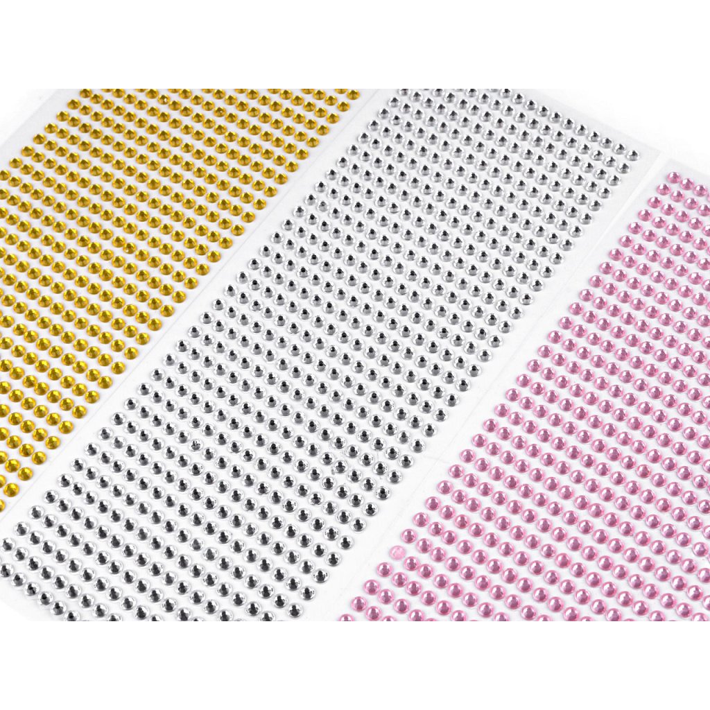 Kamínky v řadách jsou navzájem spojeny lepicím proužkem, takže tvoří pásky. Kamínky můžete i jednotlivě nastříhat.
