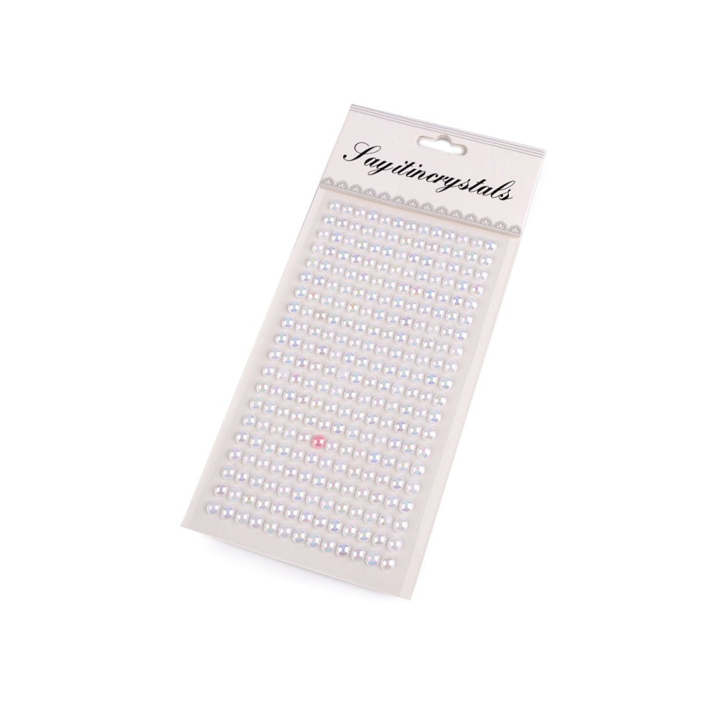 Půlkulaté samolepicí perly s jedinečným perleťovým leskem s povrchovou AB úpravou. Využijete je k dekorování při technice scrapbooking.