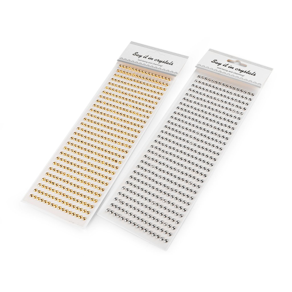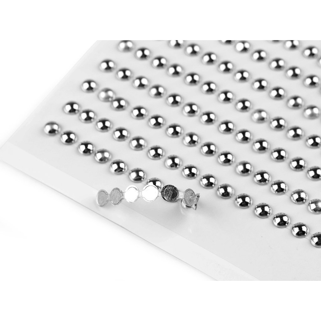 Samolepicí půlkulaté perly s metalickým leskem využijete k dekorování v technice scrapbooking. Všechny perly jsou nalepené na jednom archu podkladové folie, ze které se pohodlně odlepí.