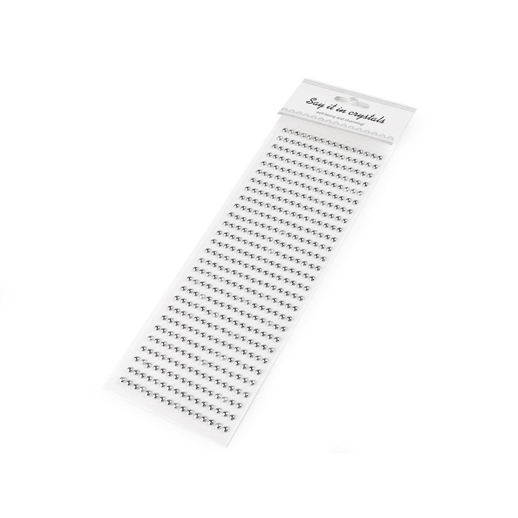 Perly v řadách jsou navzájem spojené lepicím proužkem, takže tvoří pásky. Celkem zde najdete 28 pásků (v každém je 16 perel). Můžete je i jednotlivě nastříhat. Doporučujeme je lepit na suchý, hladký a pevný povrch.