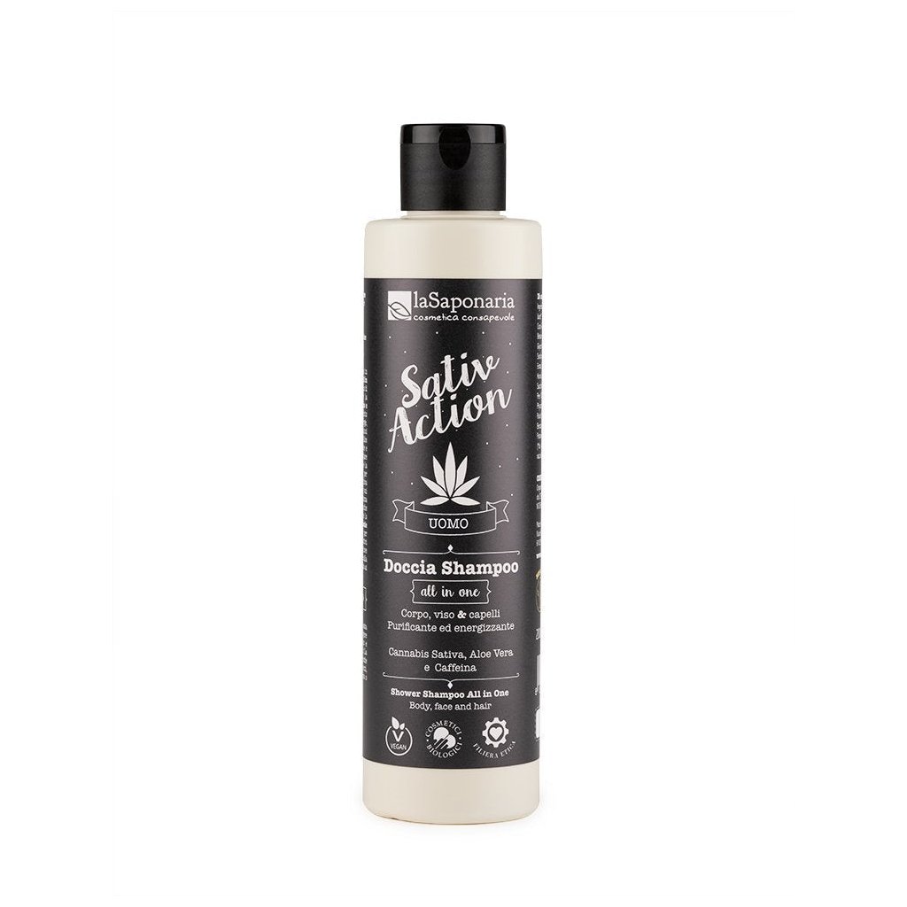 Sprchový gel a šampon laSaponaria je perfektní pro časté sprchy po dlouhém dni nebo po sportu. Pod víčkem ukrývá samé šetrné ingredience, z části v BIO kvalitě, což dosvědčuje i certifikace Cosmetici Biologici. Konopí i aloe vera pokožku i vlasy krásně zklidní, hydratují a zjemní, kofein pomůže odstranit vysloužilé kožní buňky a nečistoty a celkově zlepší kondici kůže i vlasů. Přípravek je navíc koncentrovaný, a bude vám tak dělat v koupelně společnost hodně dlouho.
