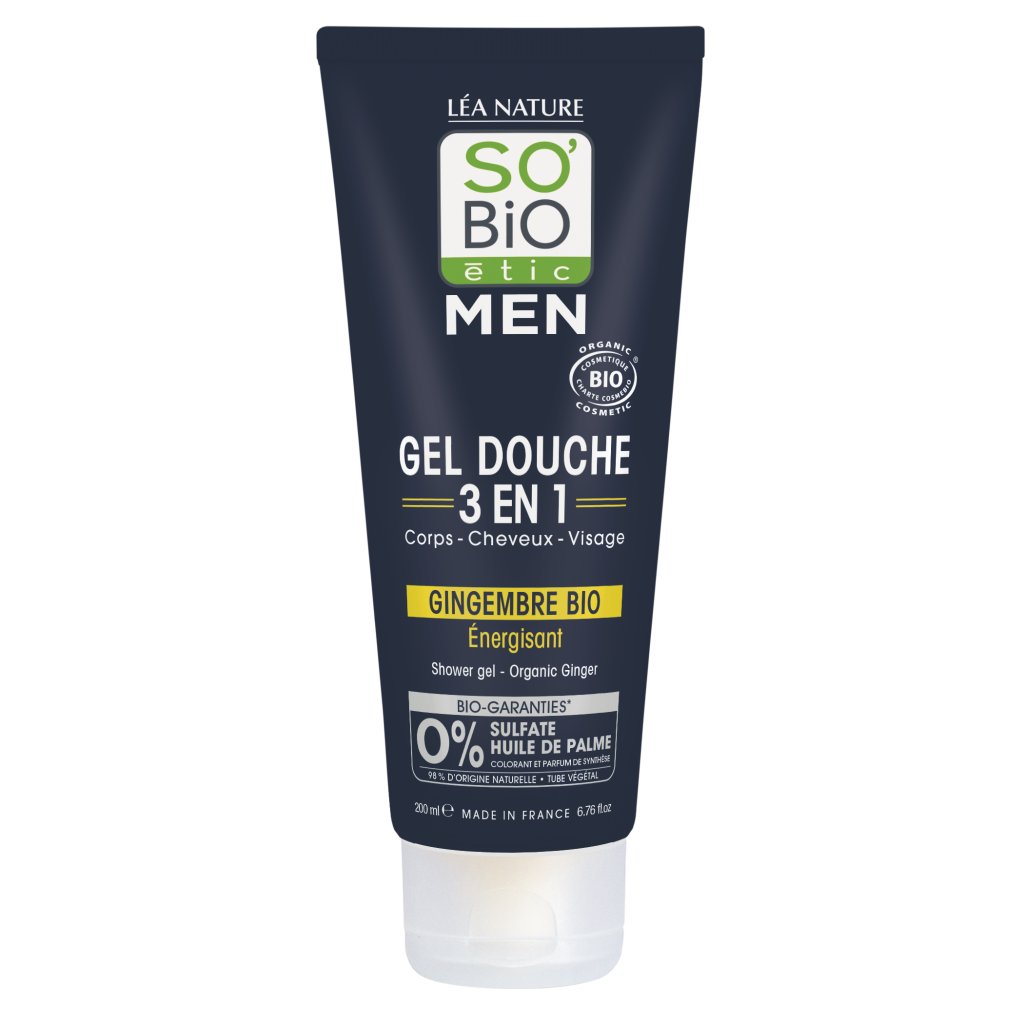 SO’BiO étic Gel sprchový MEN 3v1 - energizující zázvor BIO (200 ml) - na tělo, obličej i vlasy